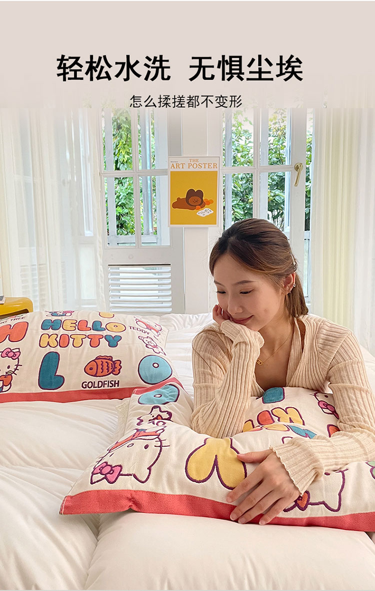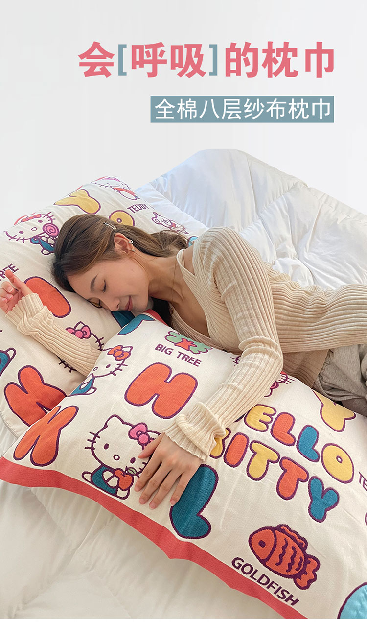 当前位置: 91家纺网 > 商品网购 > 床上用品 > 枕巾 > 麻依新款三丽鸥八层纱布全棉枕巾卡通一对装55*80 童趣kitty