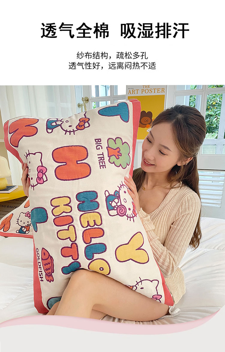 麻依新款三丽鸥八层纱布全棉枕巾卡通一对装55*80 童趣kitty