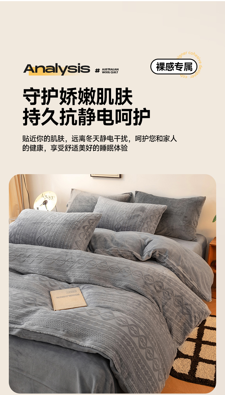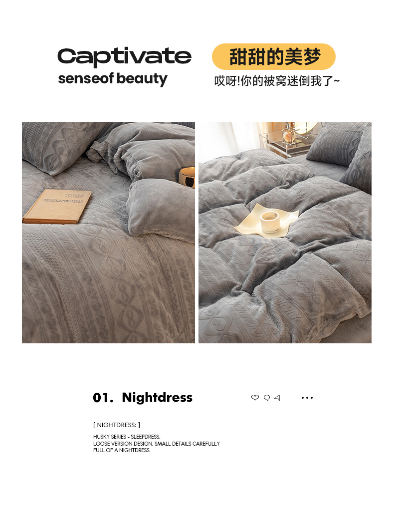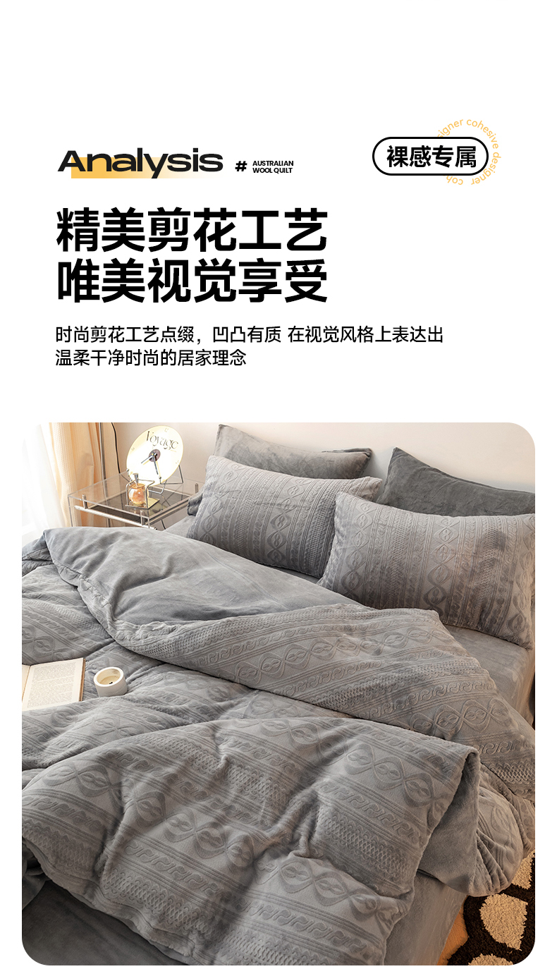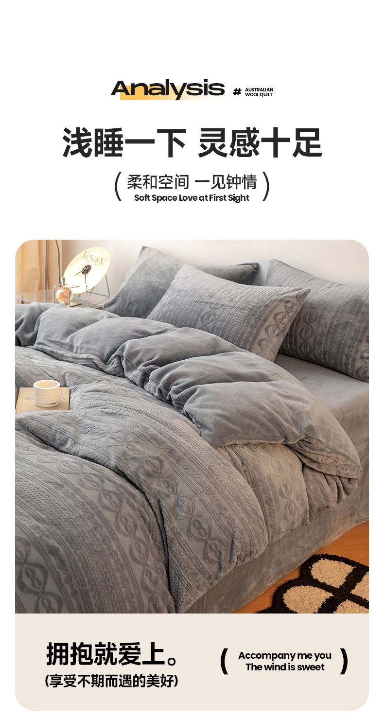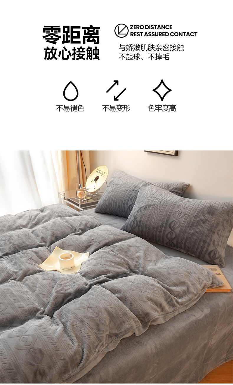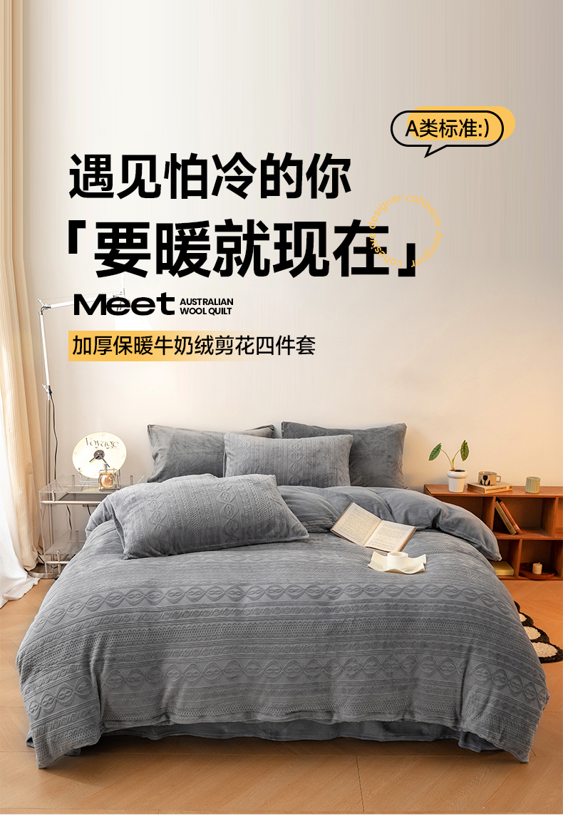 当前位置: 91家纺网 > 商品网购 > 床品套件 > 四件套 > 牛奶绒四件套 > 寐眠 2023新款牛奶绒剪花四件套 高级灰