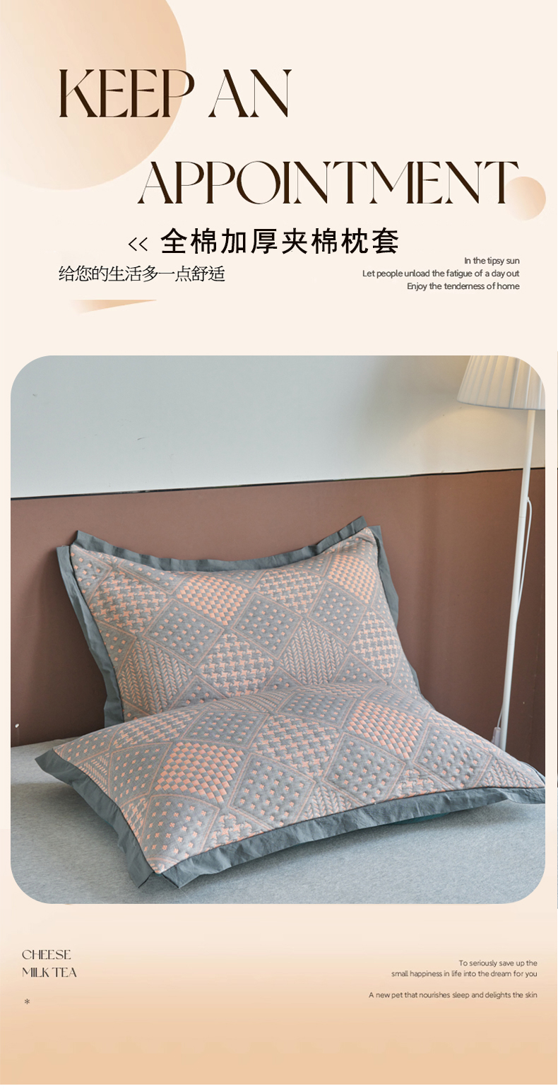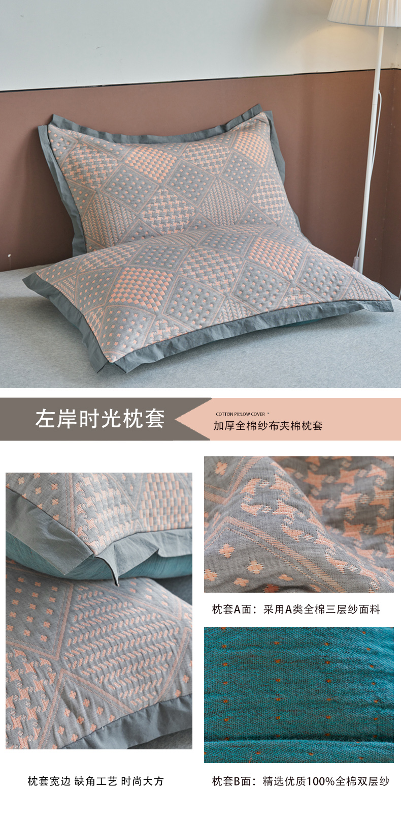 棠薇家纺 2023新款60支细纱全棉枕头套三层纱夹棉枕套 左岸时光枕套