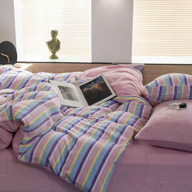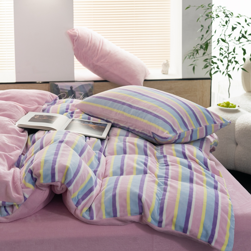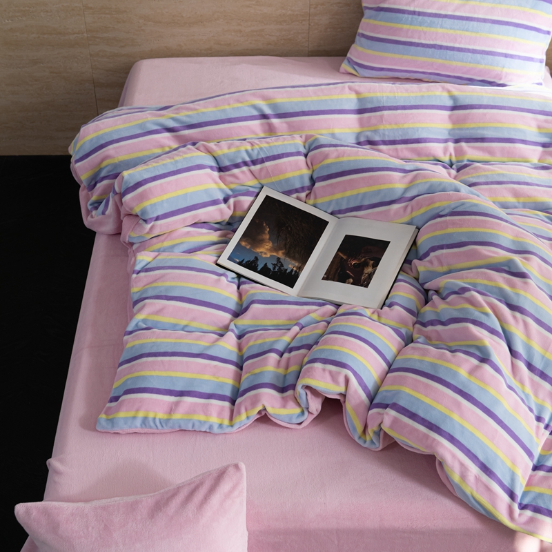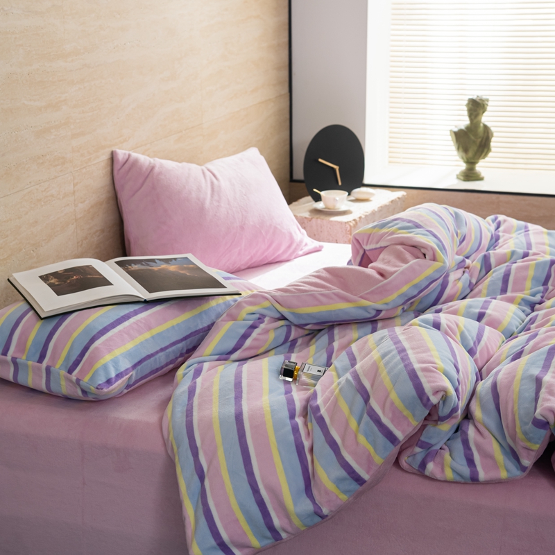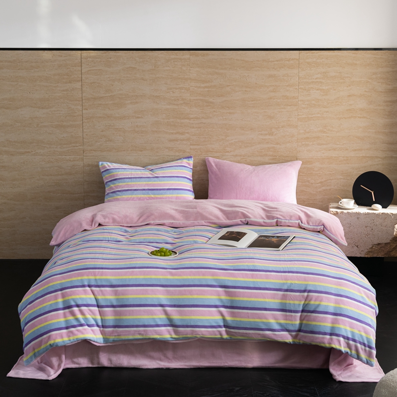 洋铭区(原狠狠爱) 2023新款ab版牛奶绒绒糖果彩条四件套 糖果紫粉条