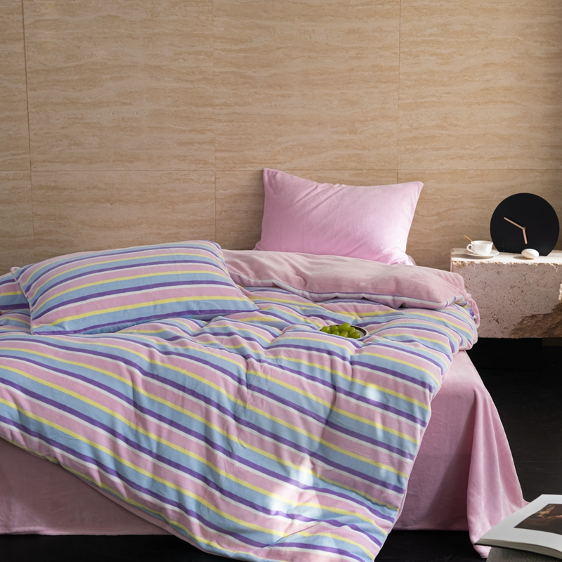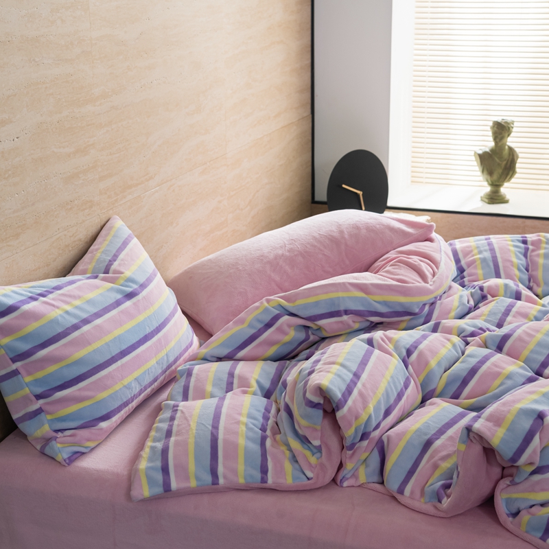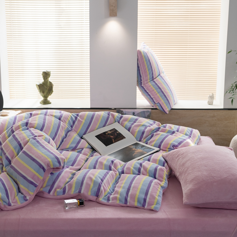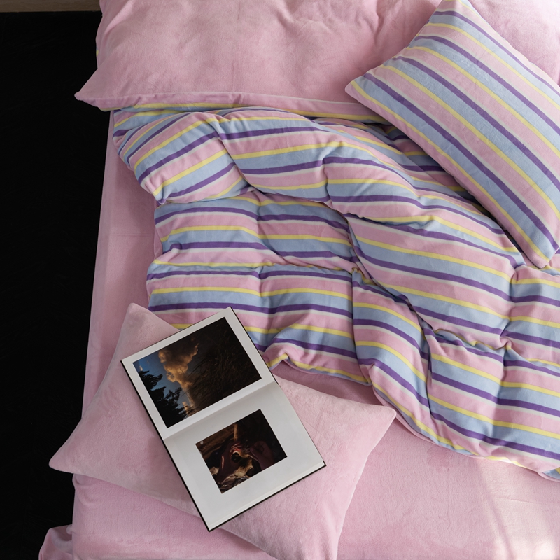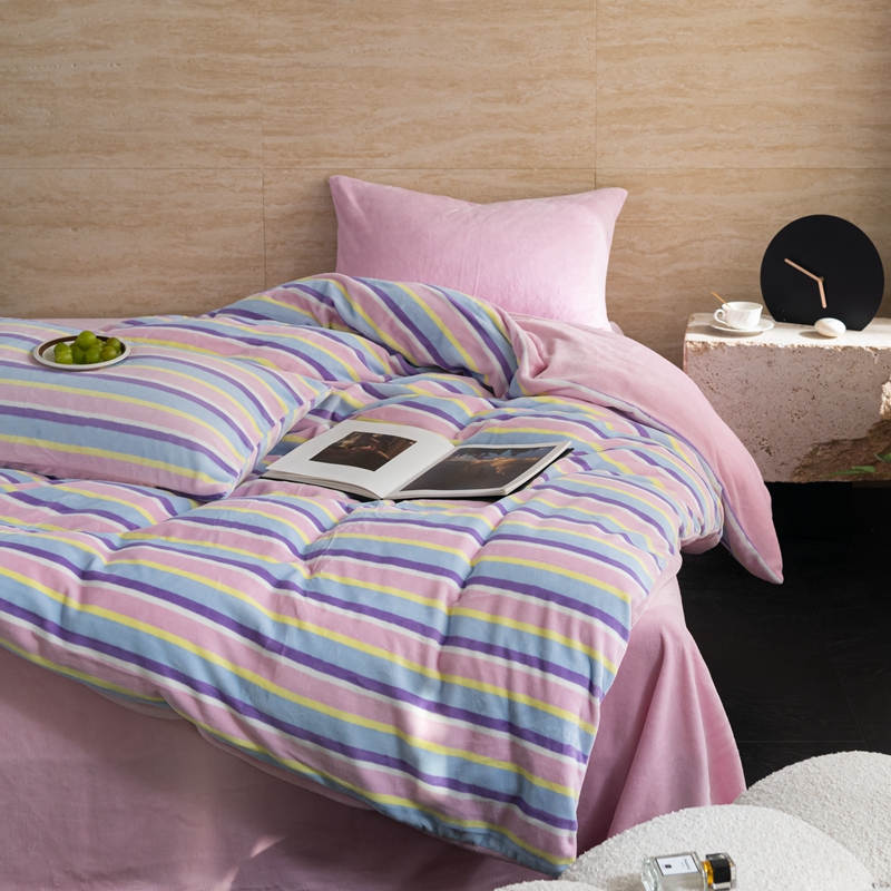 洋铭区(原狠狠爱) 2023新款ab版牛奶绒绒糖果彩条四件套 糖果紫粉条