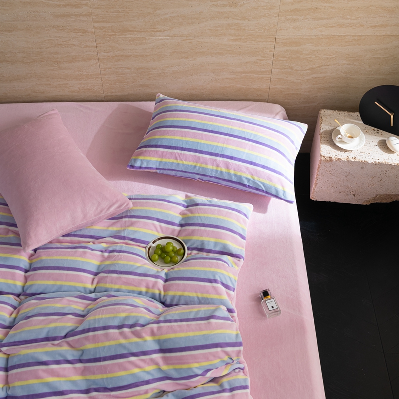 商品名称:洋铭区(原狠狠爱) 2023新款ab版牛奶绒绒糖果彩条四件套 糖果紫粉条