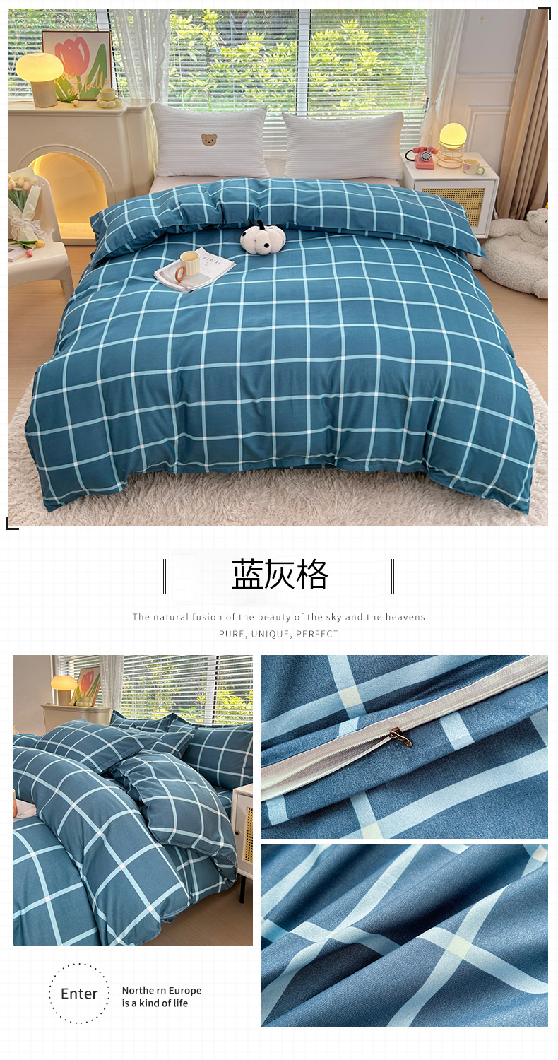 商品名称:曼璐家纺 2025新款加厚磨毛植物羊绒单被套直播爆款被套单件 蓝灰格