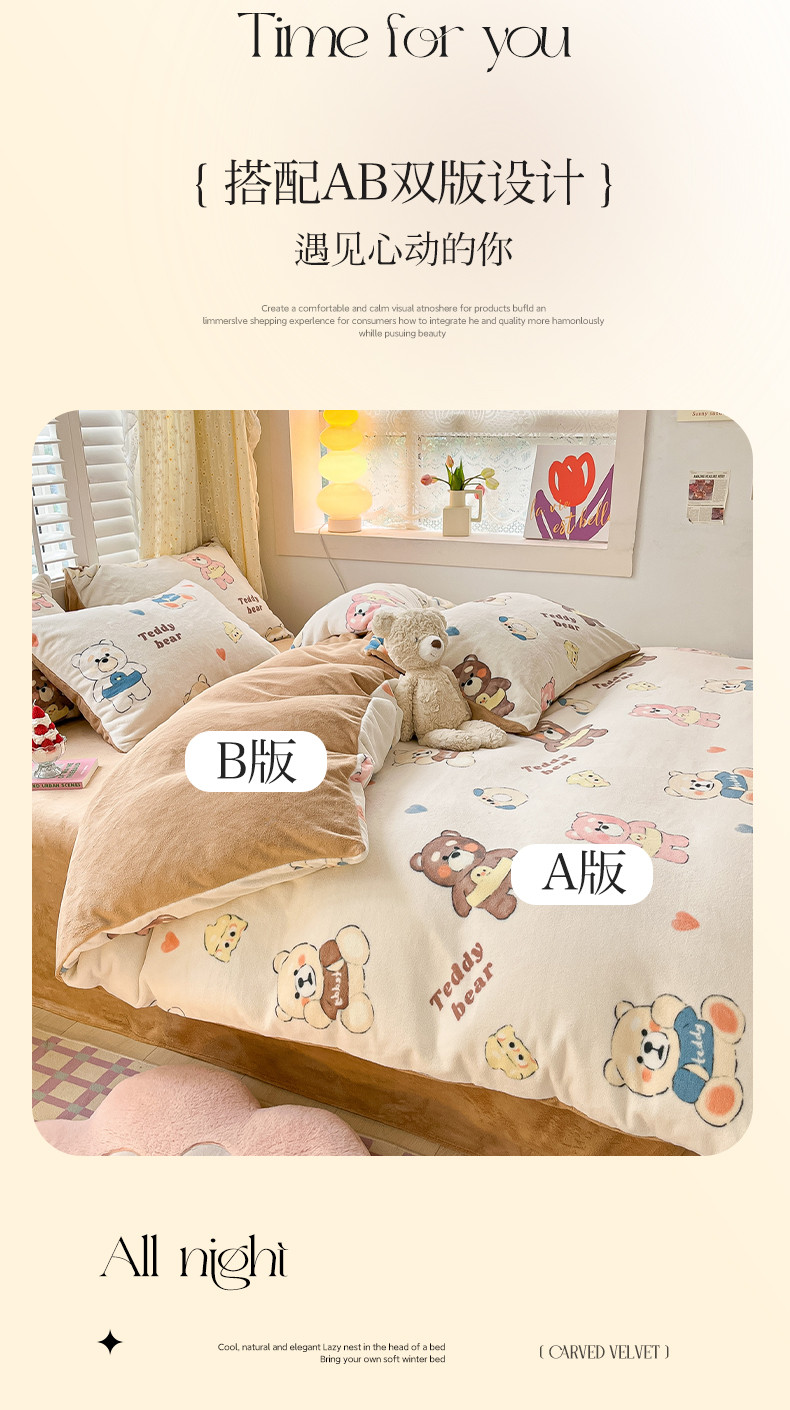 (总)2024新款水洗棉小清新印花学生三件套(床笠床套款),爱心熊,粉郁盛开,花间兔,花语,恐龙乐园,仙草,紫郁盛开