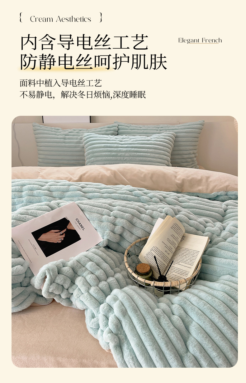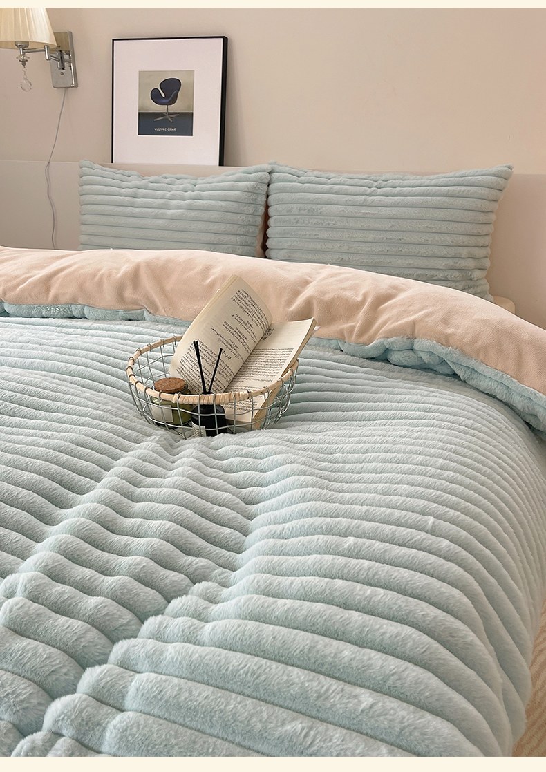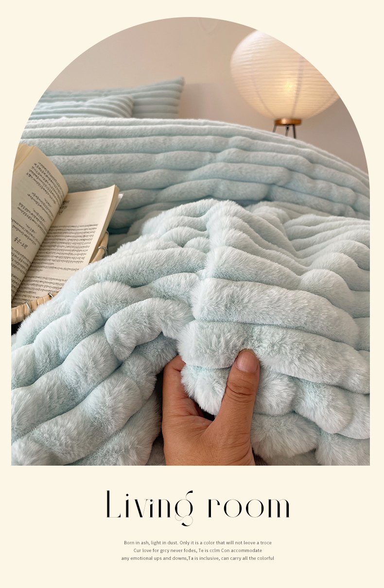 三朵家纺 2023新款加厚保暖雕花兔毛绒四件套 艾拉-美丽蓝卡