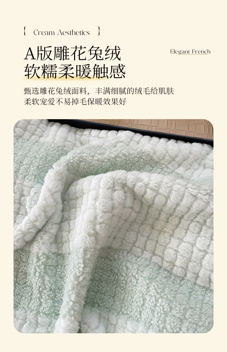商品名称:三朵家纺 2023新款加厚保暖雕花兔毛绒四件套 条纹-美丽蓝卡
