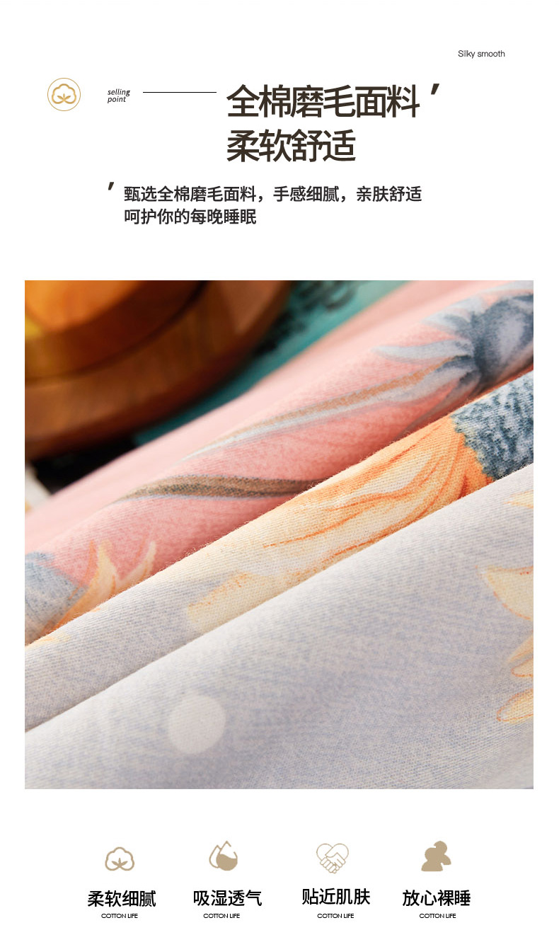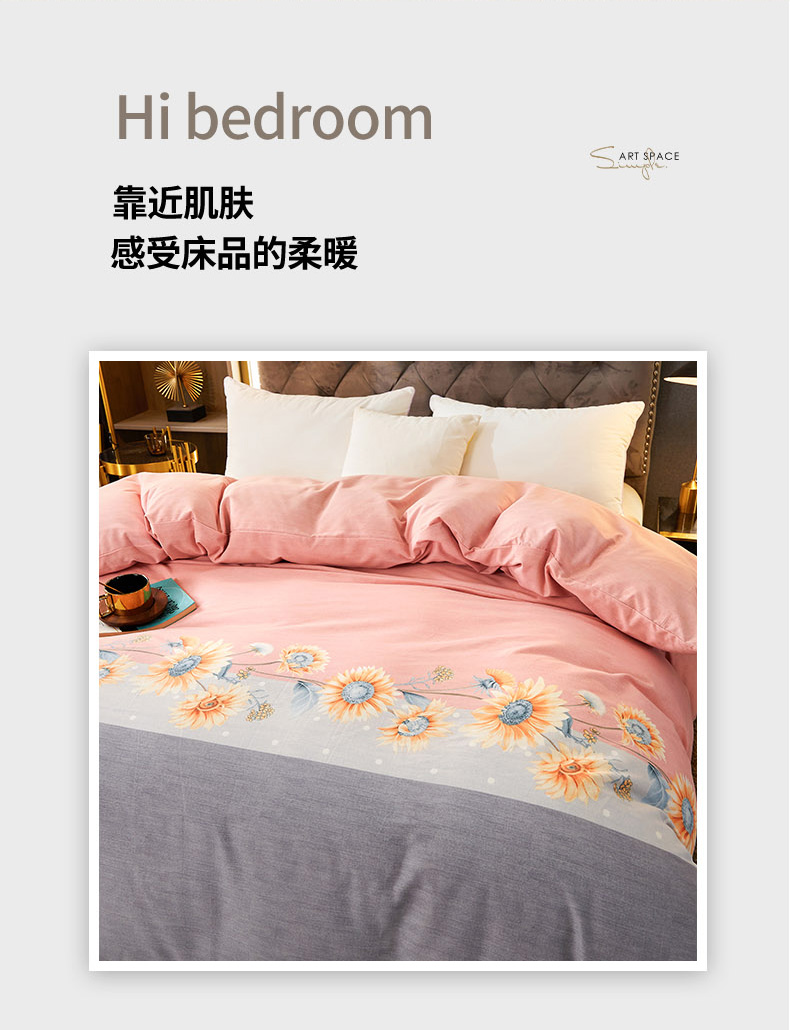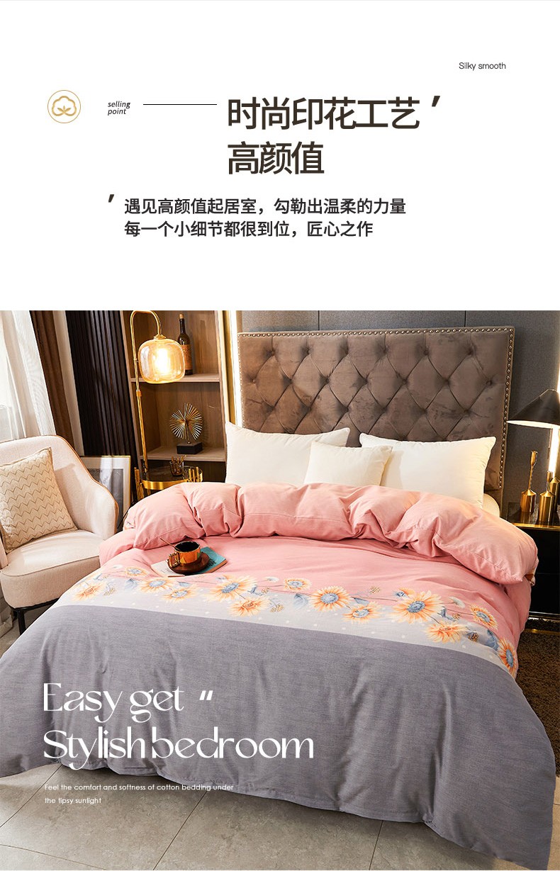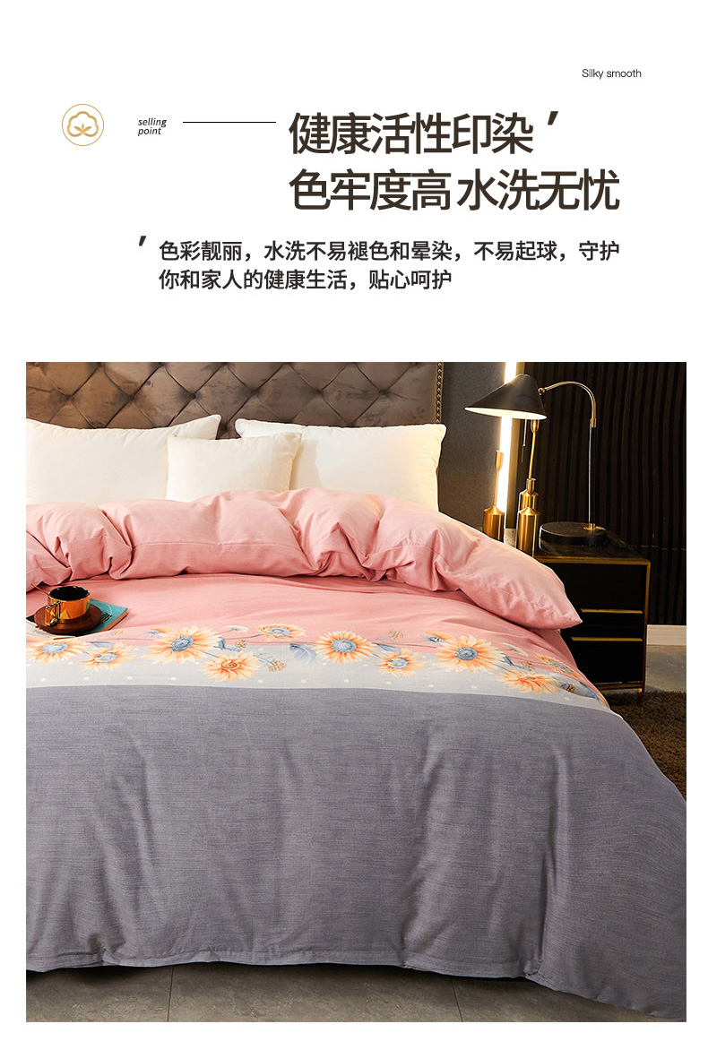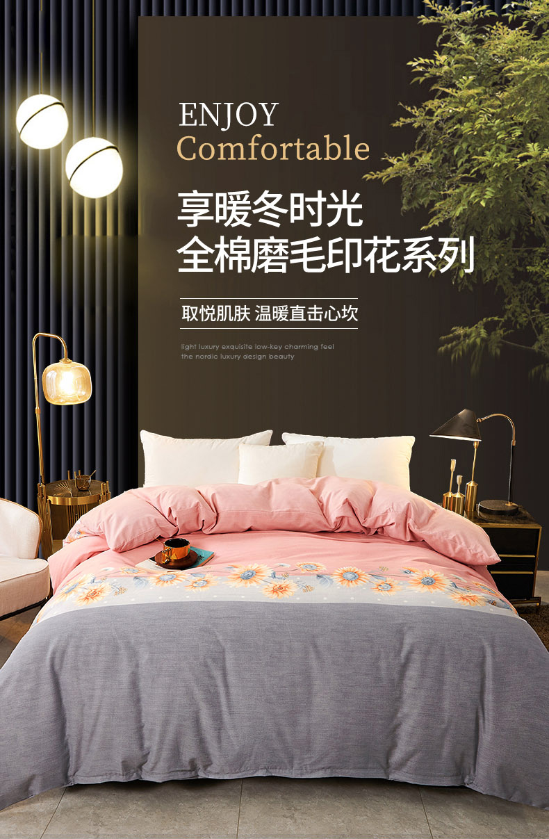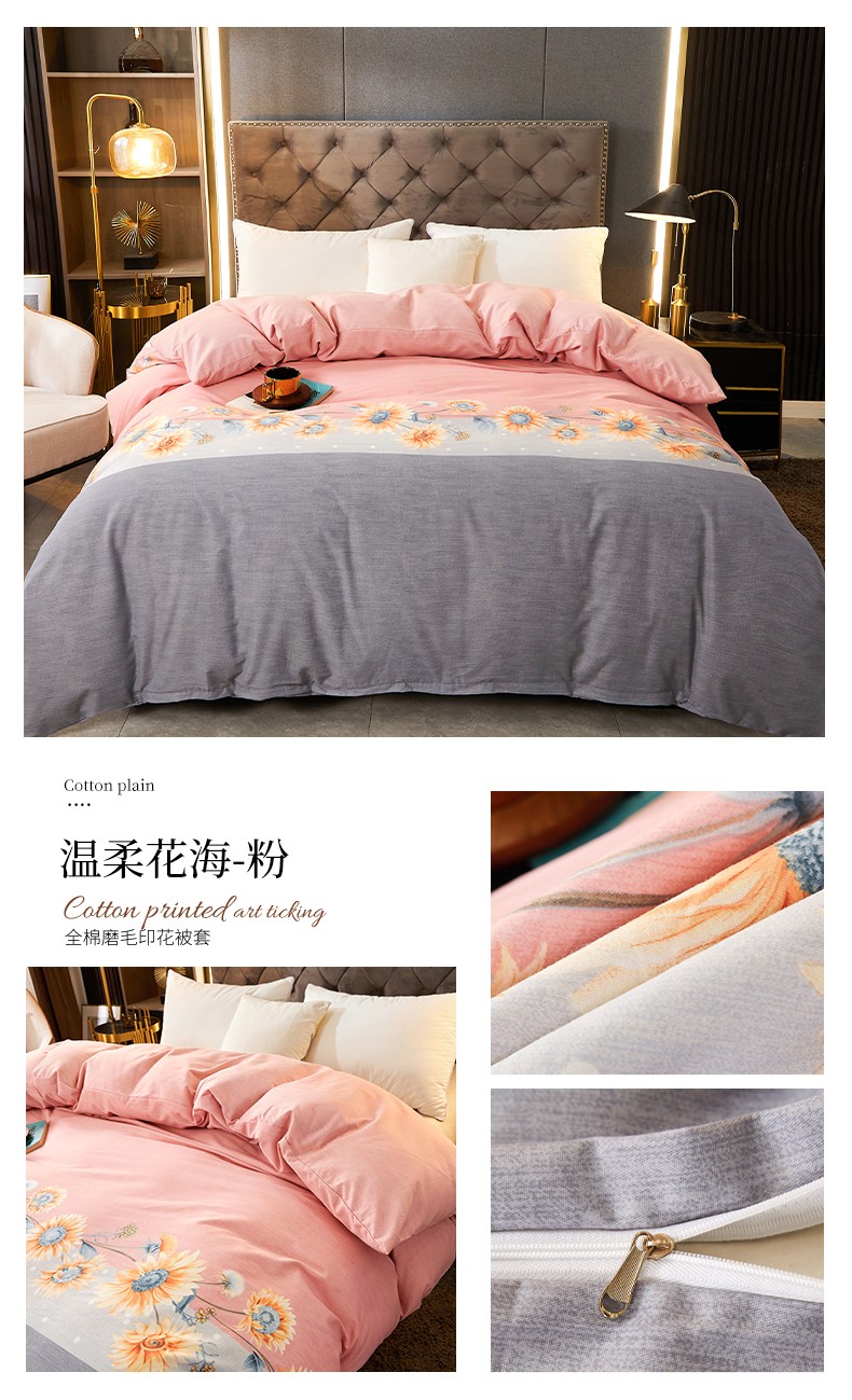 • 91家纺网 家纺一手货源 找家纺 伊而梦 2023新款全棉磨毛印花四件套系列单品被套 温柔花海-粉