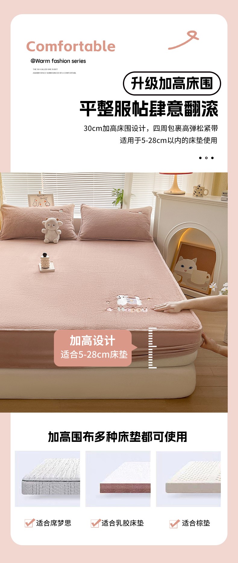 (总)鑫钰2025新款防水纯棉全棉夹棉床笠--四叶草白墙,四叶草-白,四叶草-粉,四叶草-灰,四叶草-驼,四叶草-紫