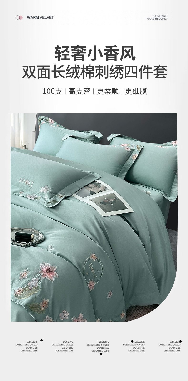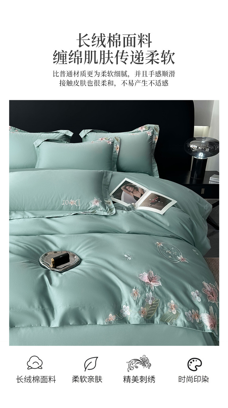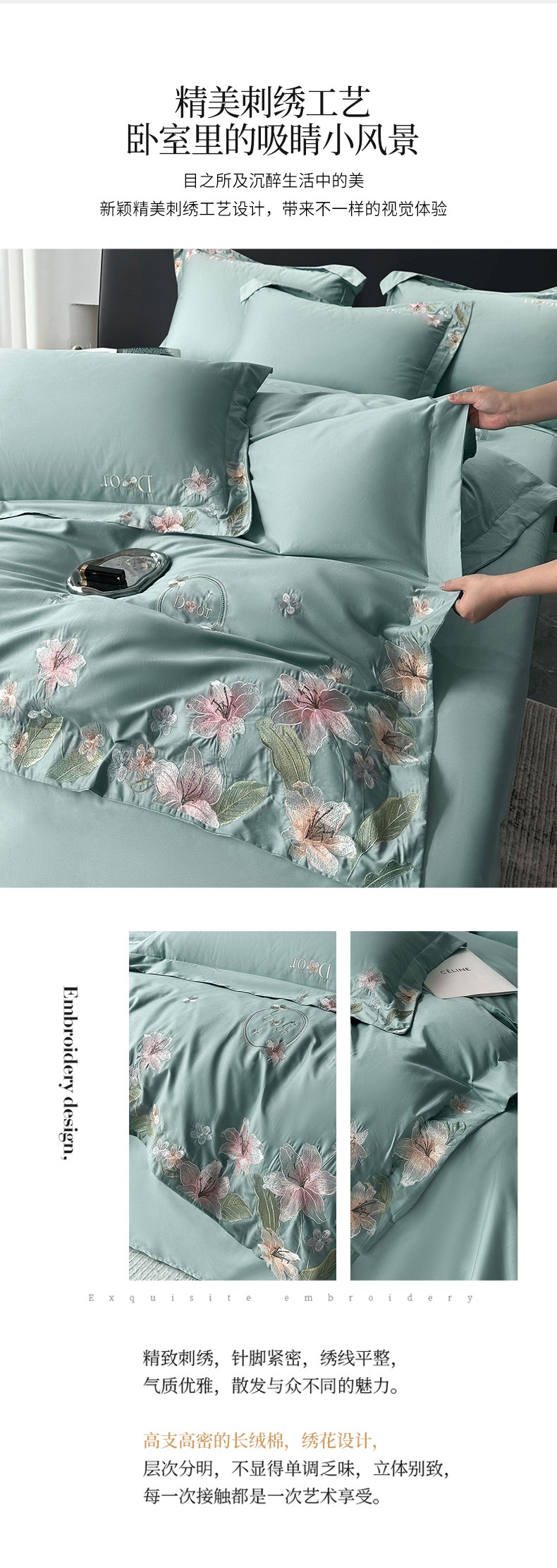 总宅家居 2024新款秘密花园系列轻奢小香风纯棉刺绣长绒棉四件套,秘密花园-初夏粉,秘密花园-梵星蓝,秘密花园-贵妃绿,秘密花园-奶昔白,秘密花园-香槟金
