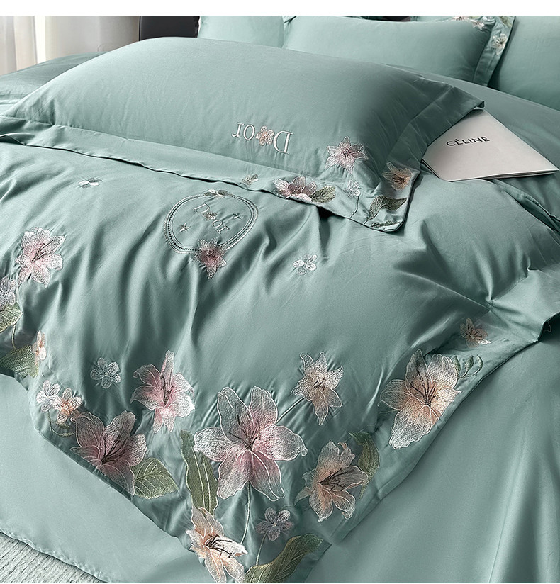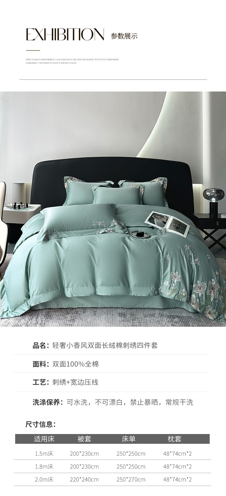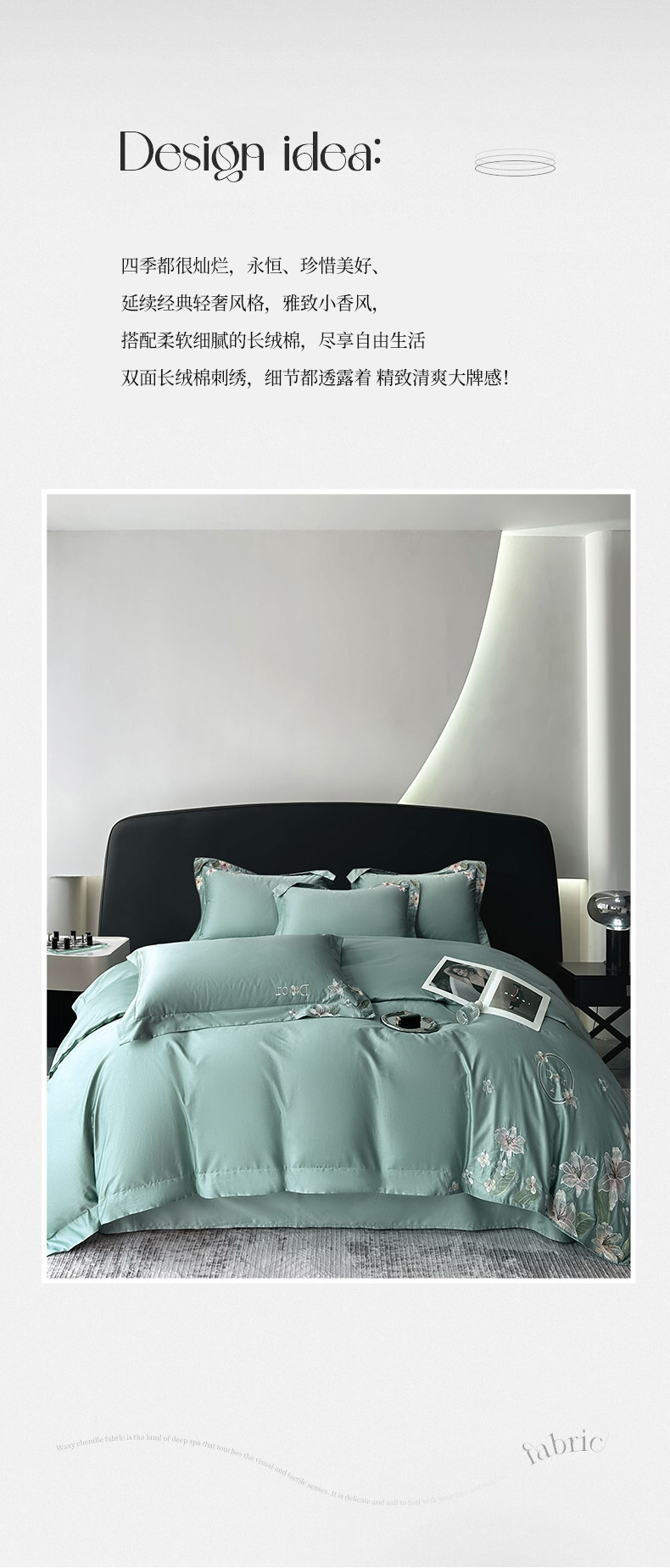 宅家居 2024轻奢小香风双面纯棉长绒棉四件套香奈百合-松石绿