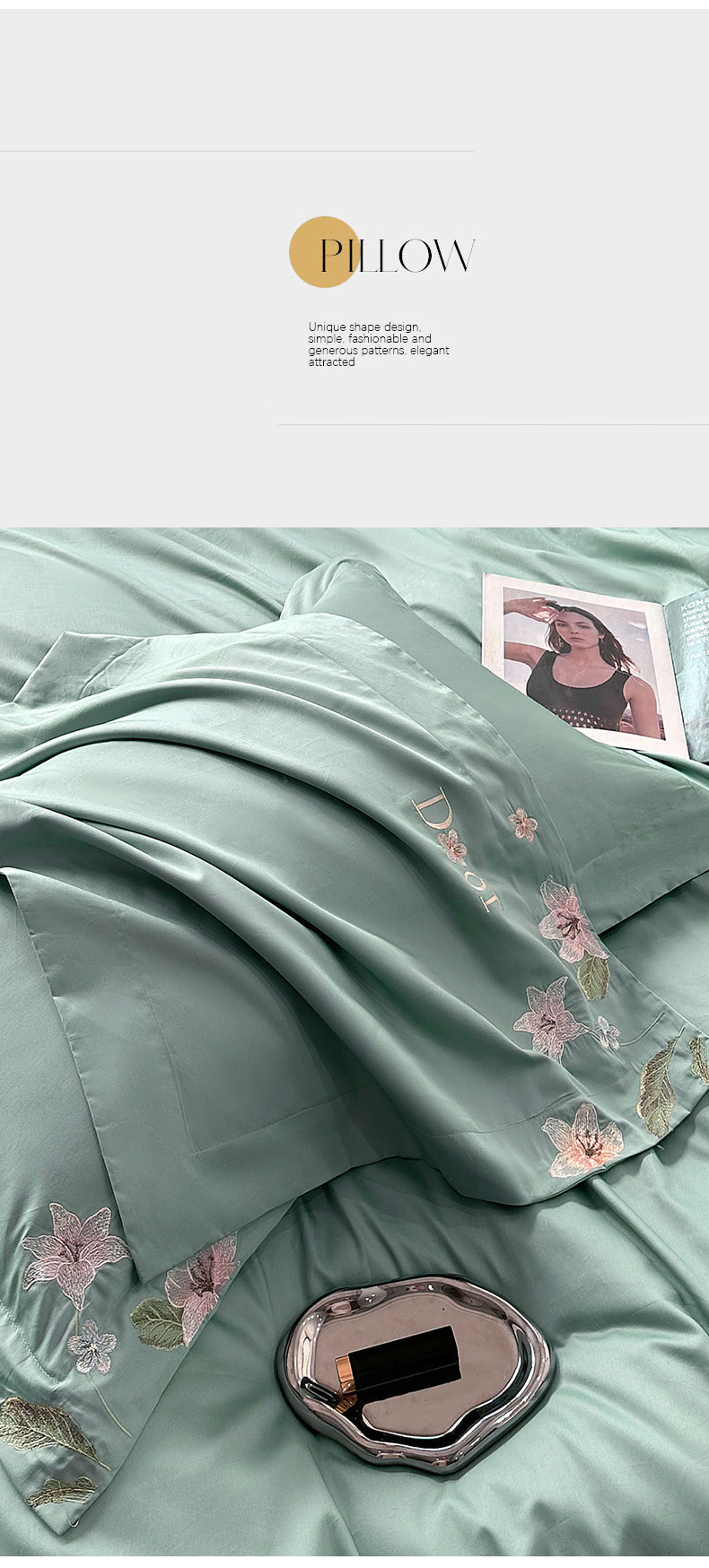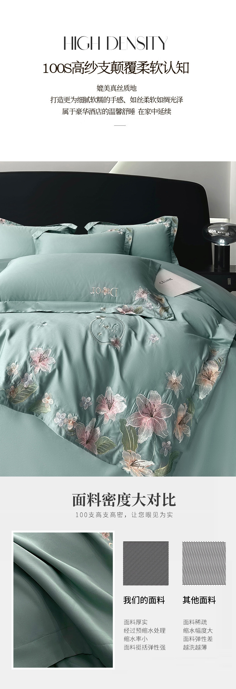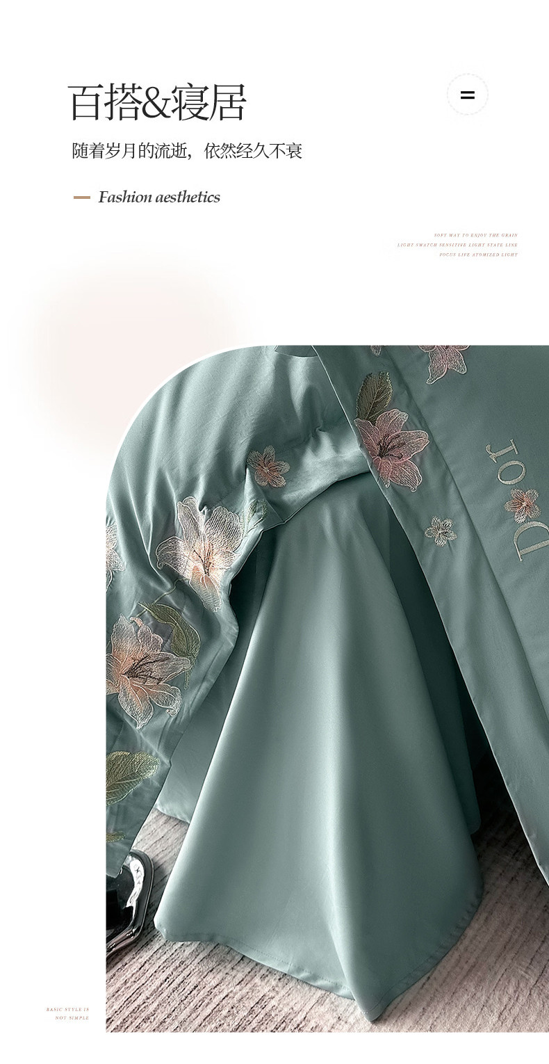 宅家居 2024轻奢小香风双面纯棉长绒棉四件套香奈百合-松石绿