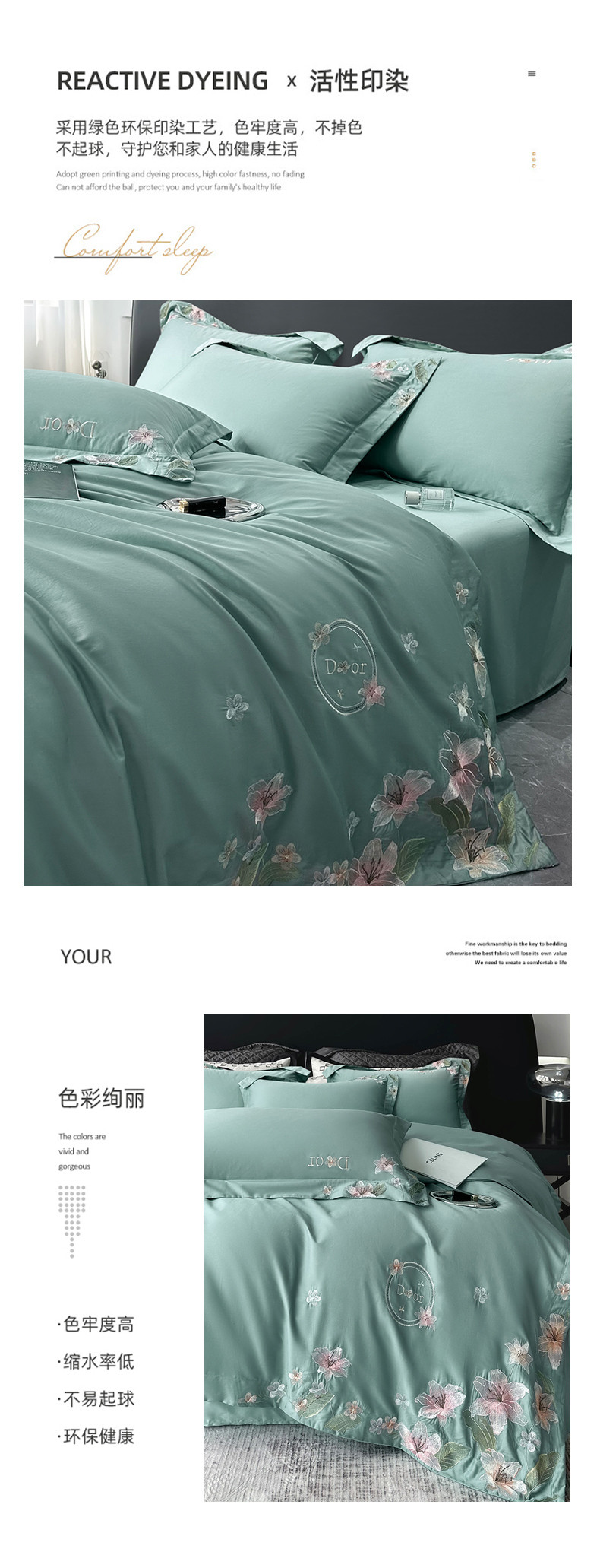 商品名称:宅家居 2024轻奢小香风双面纯棉长绒棉四件套香奈百合-松石绿