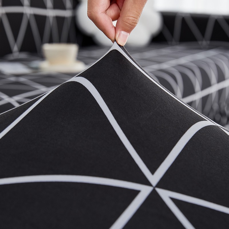 商品名称:丝绮鹿 2023新款牛奶丝沙发套贵妃图(裙边款) 黑色线格