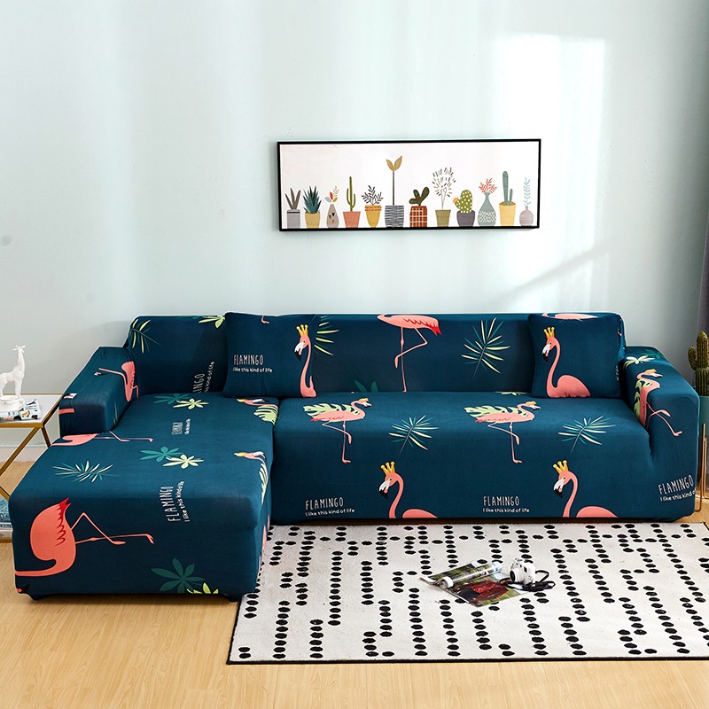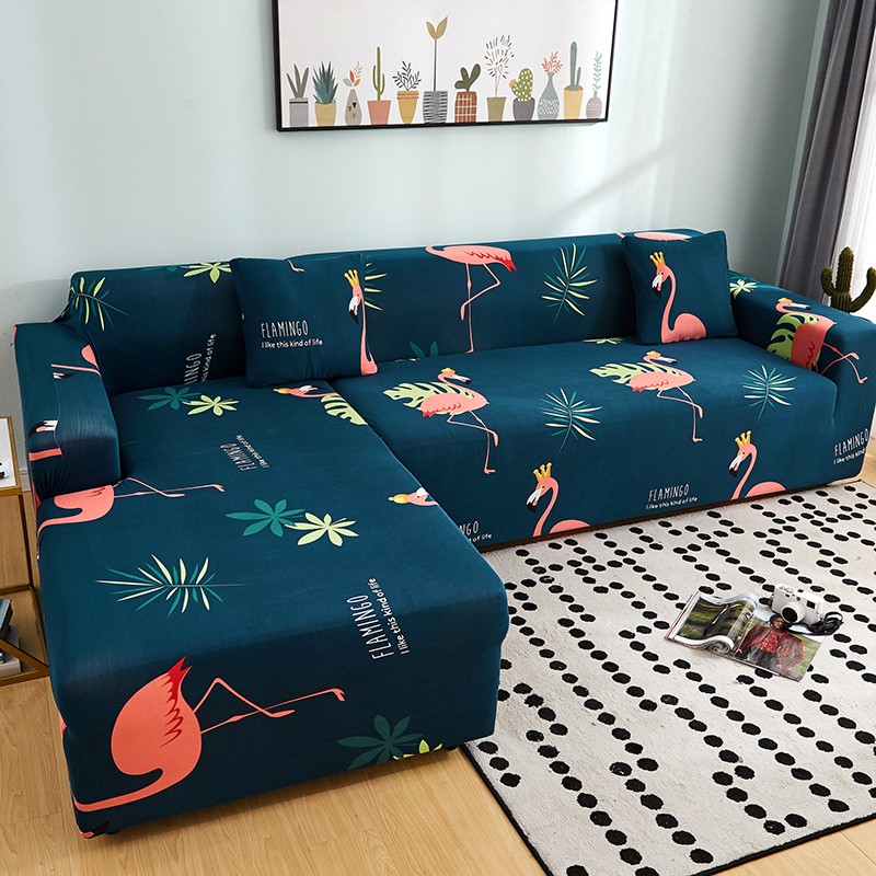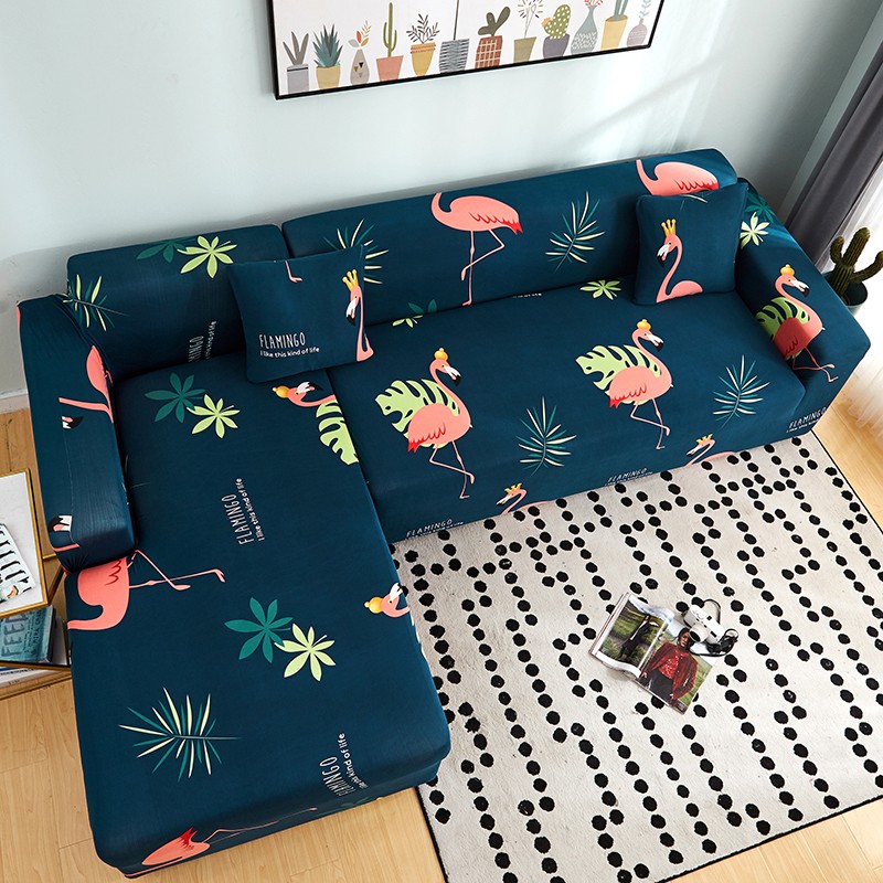 丝绮鹿 2023新款牛奶丝沙发套贵妃图(松紧款) 爱情鸟