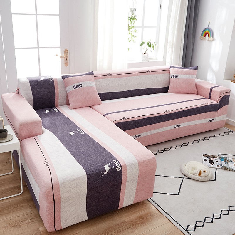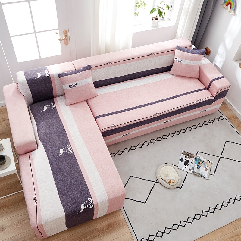 丝绮鹿 2023新款牛奶丝沙发套贵妃图(松紧款) 萌萌小鹿