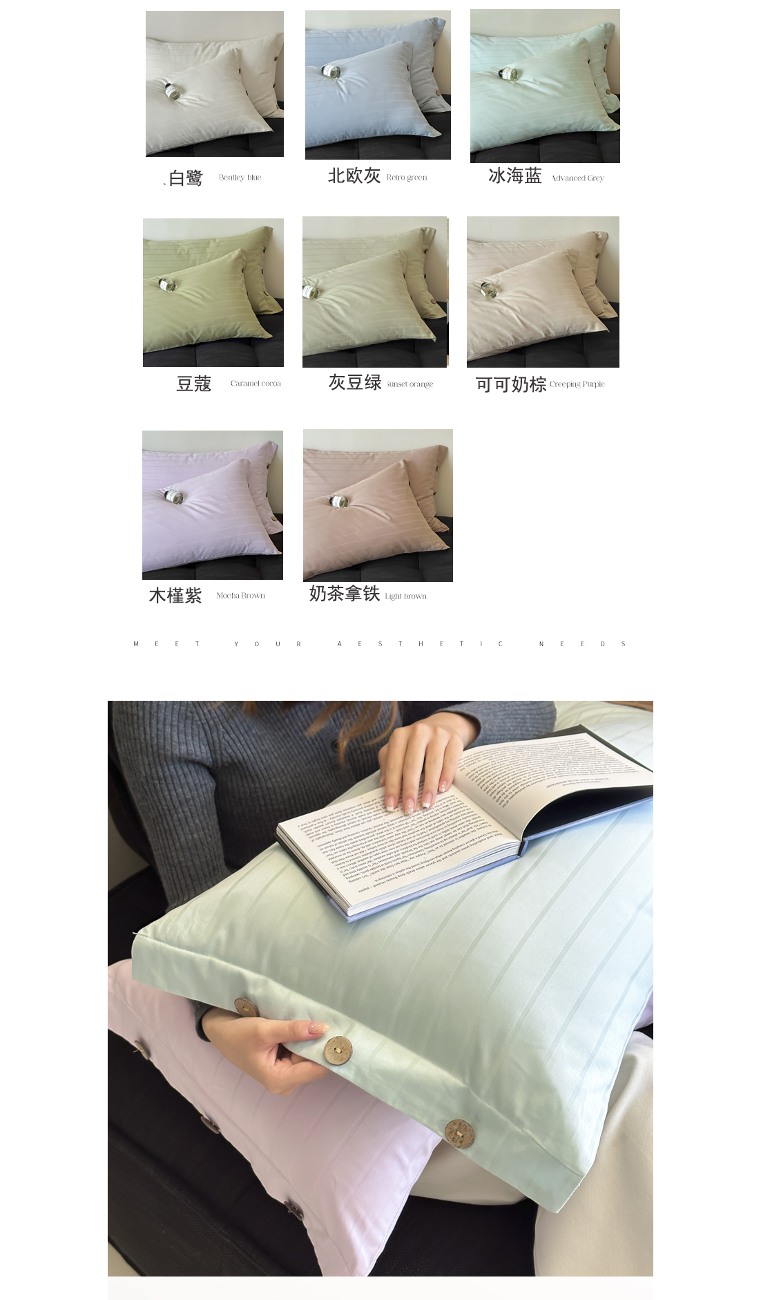 商品名称:(总)三朵家纺 2024春夏全棉提花贡缎缎条枕套
