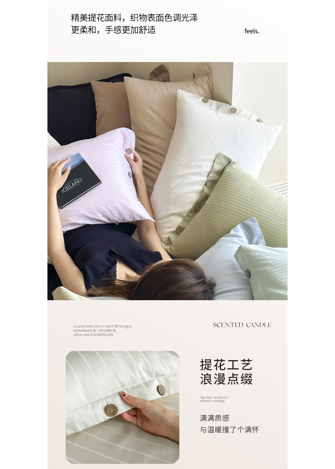 (总)三朵家纺 2024春夏全棉提花贡缎缎条枕套