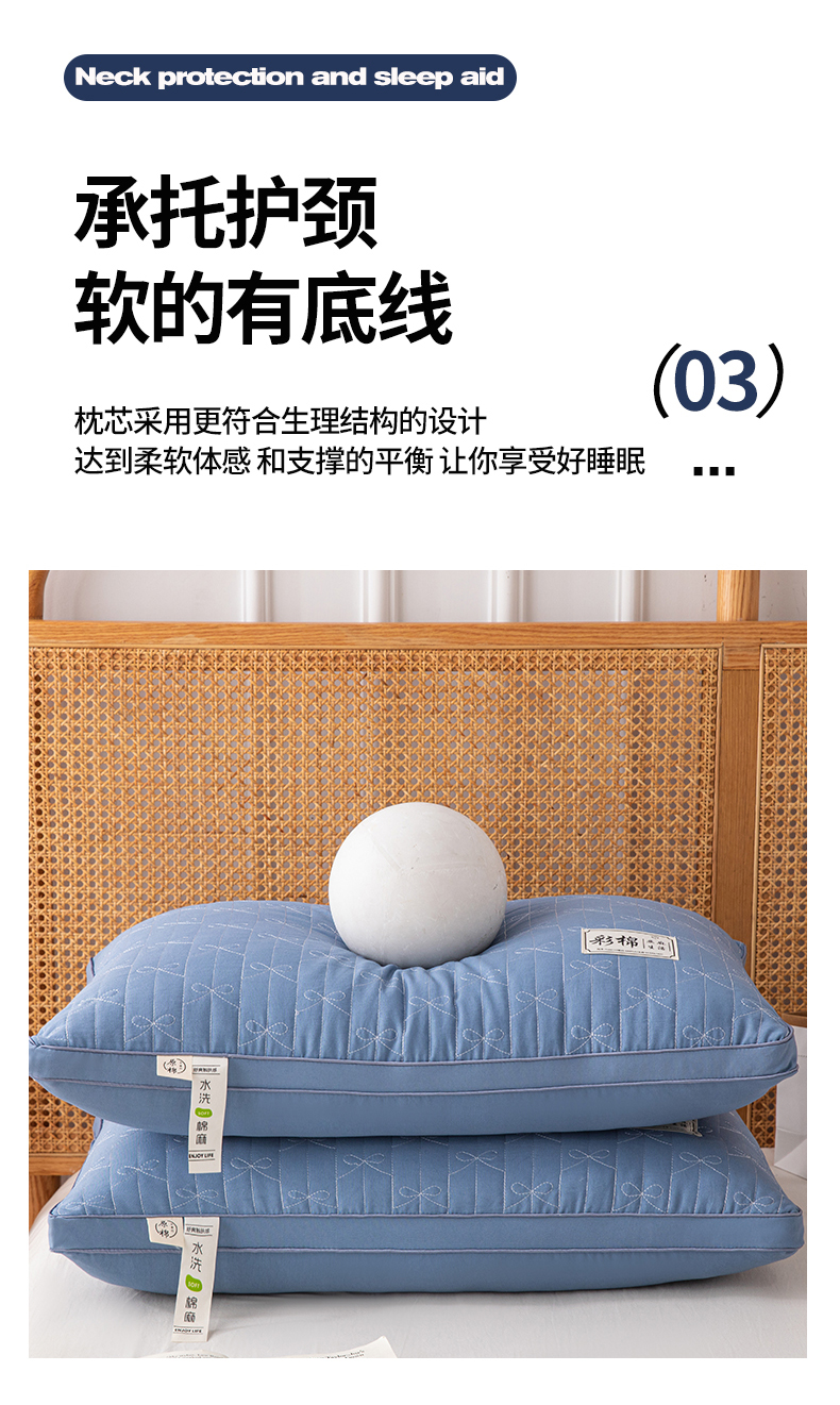 当前位置: 91家纺网 > 商品网购 > 枕头/枕芯/保健枕/颈椎枕 > 普通枕芯 > 织布人 2024新款枕芯绗缝水洗棉麻亚麻生活立体枕头护颈椎助睡眠枕芯 亚麻生活-单边低枕灰色48*74cm