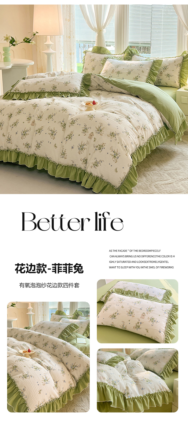 慕梵家居 2024新款泡泡纱花边款四件套 花边款-菲菲兔