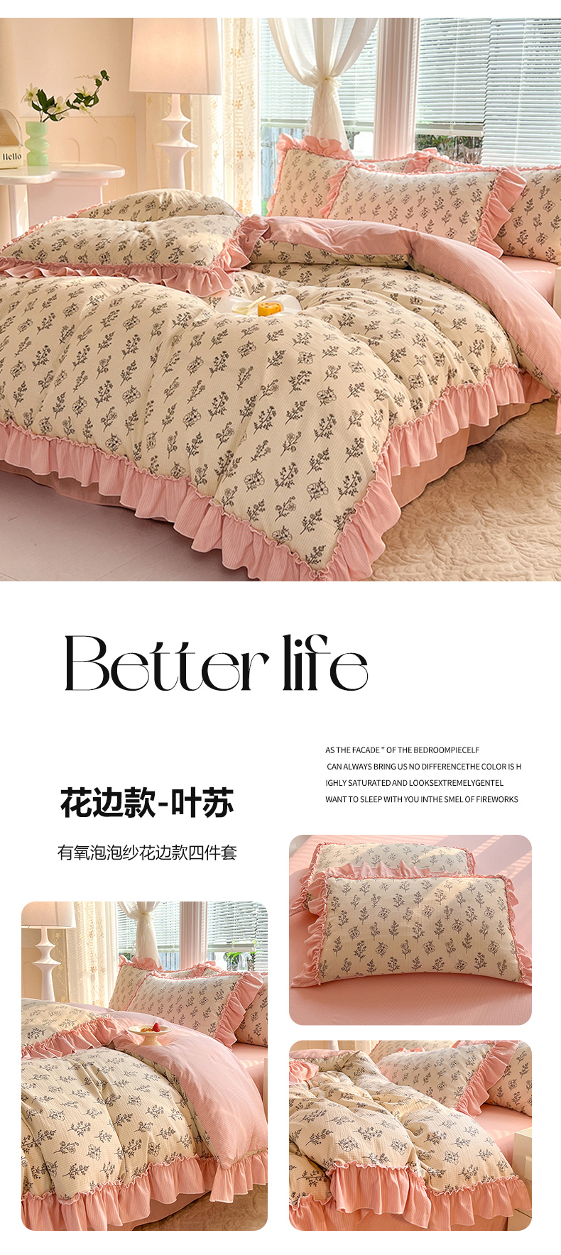 商品名称:慕梵家居 2024新款泡泡纱花边款四件套 花边款-叶苏