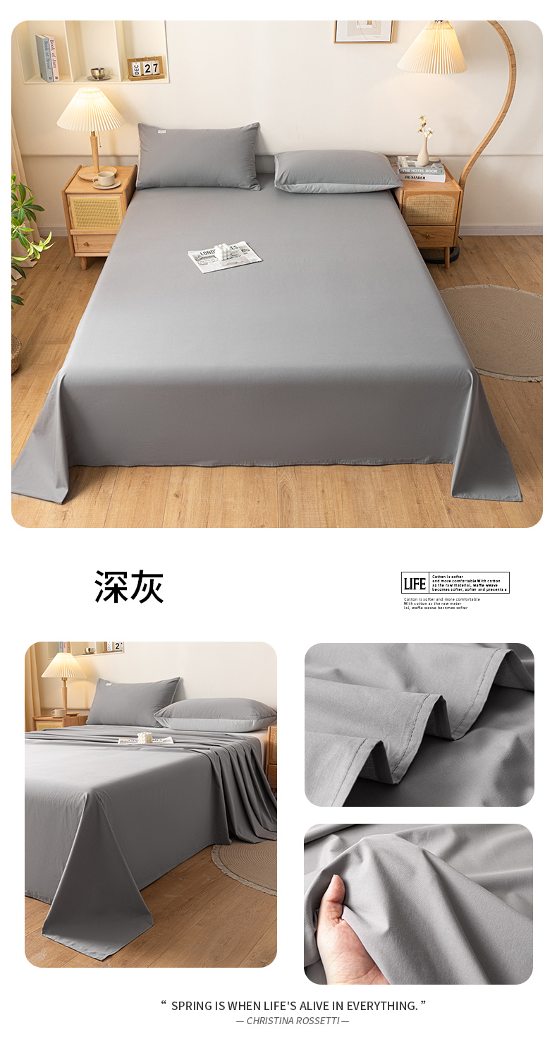 当前位置: 91家纺网 > 商品网购 > 床上用品 > 床单 > AB家纺 2024新款A类40支水洗全棉床单三件套 深灰