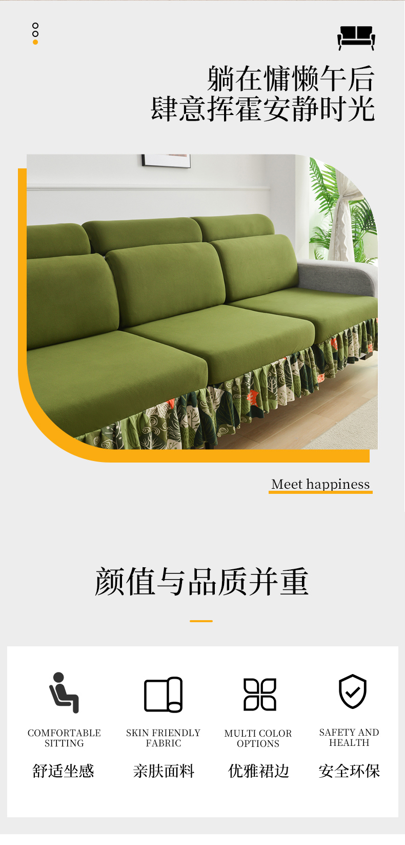 当前位置: 91家纺网 > 商品网购 > 居家布艺 > 坐垫/椅垫/沙发垫 > 沙发垫 > 千彤沙发垫 2024新款裙边款-高精密雪尼尔沙发垫 绿色