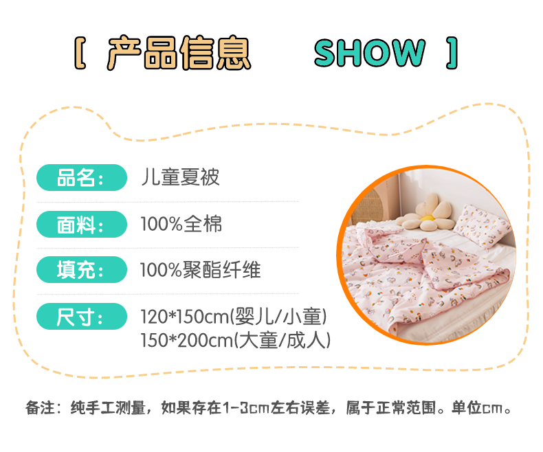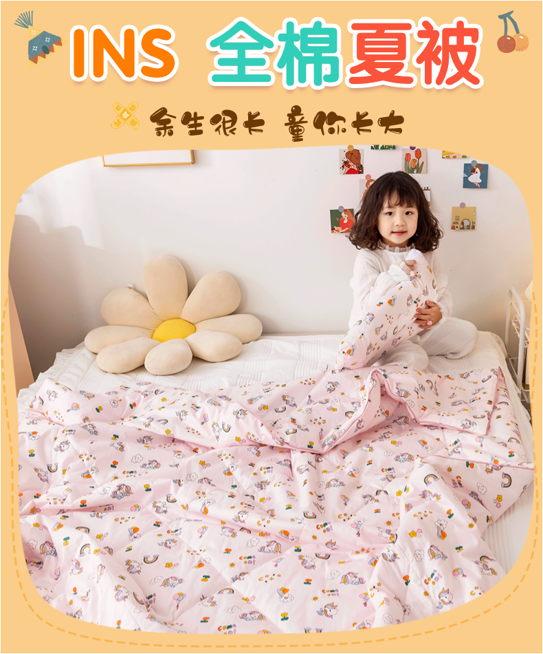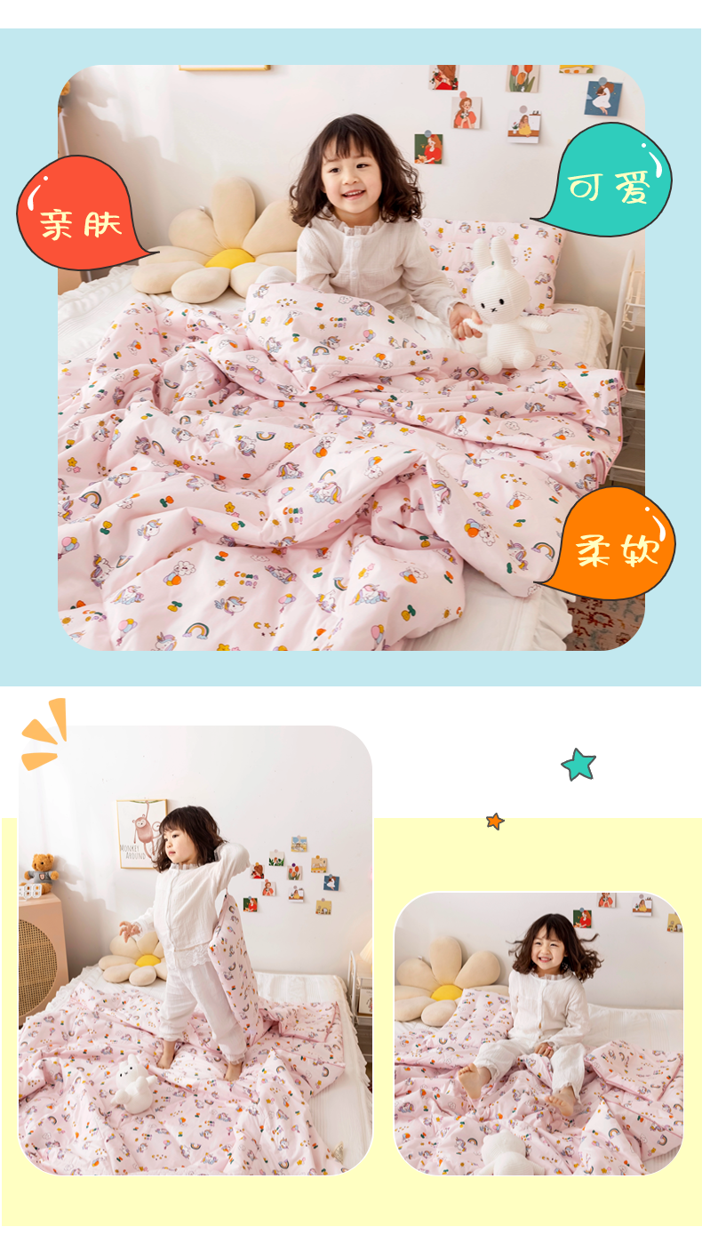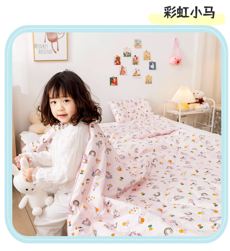 商品名称:十九色 2024新款全棉13372 ins儿童夏被 彩虹小马