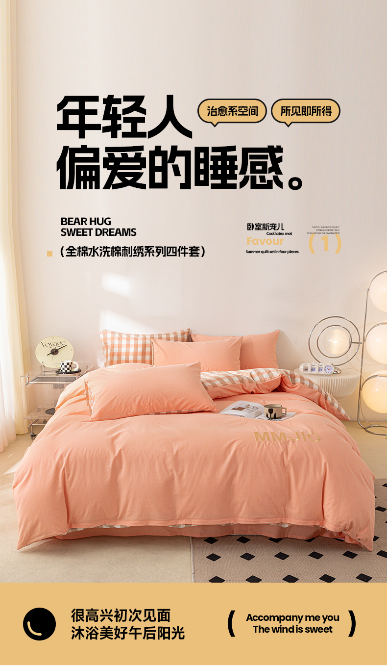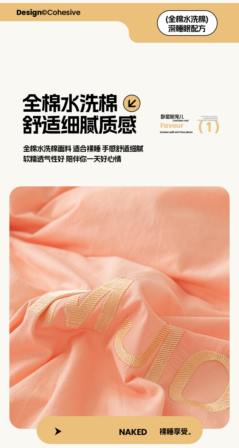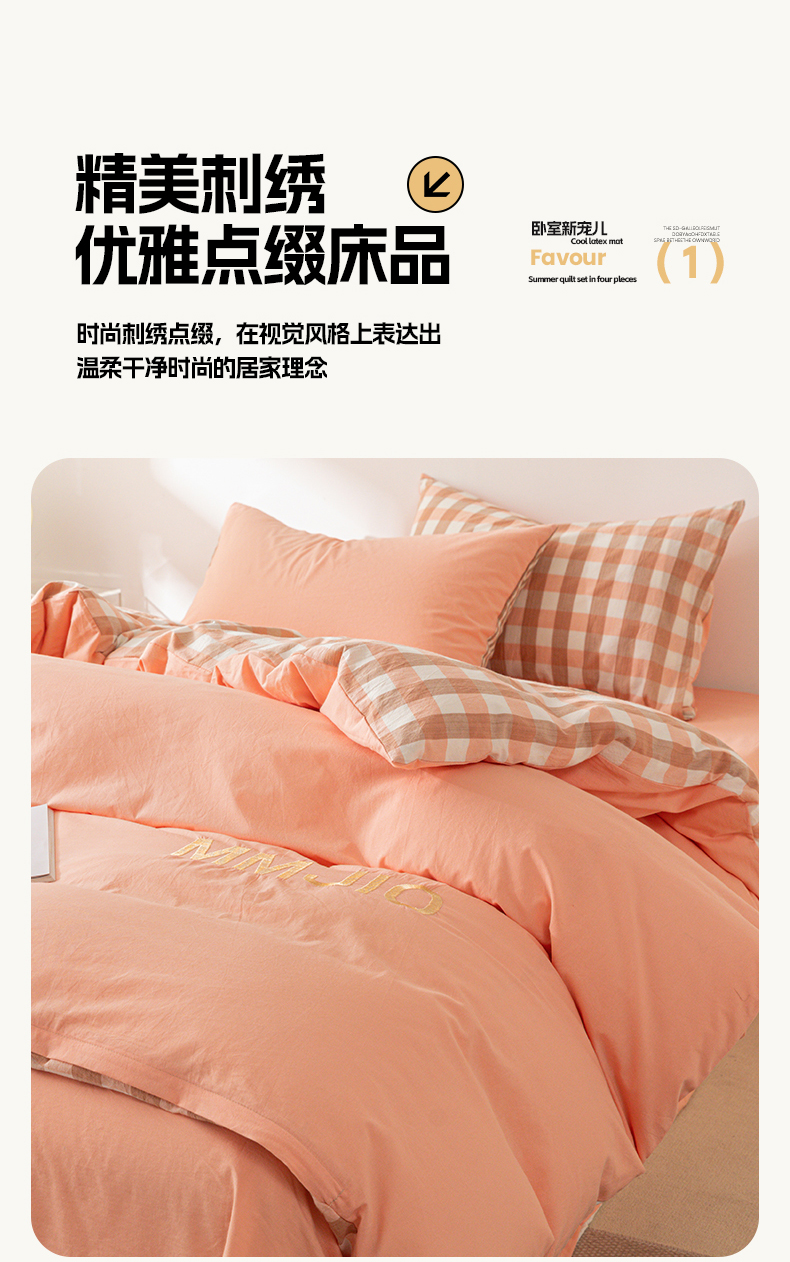 当前位置: 91家纺网 > 商品网购 > 床品套件 > 四件套 > 全棉普通四件套 > 寐眠 2024新款全棉水洗棉刺绣四件套 西柚冰茶