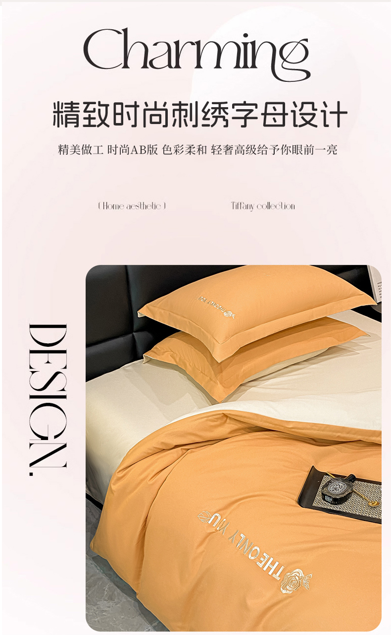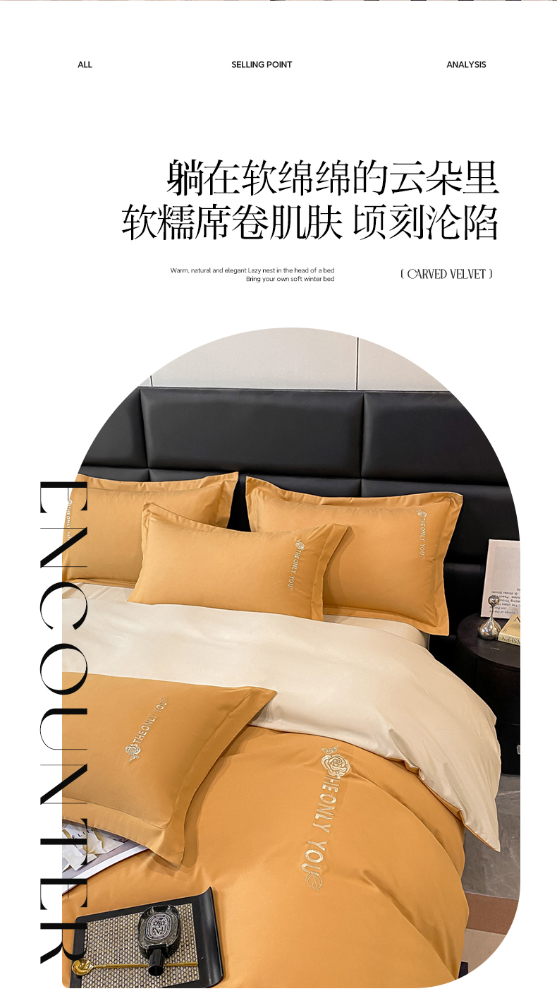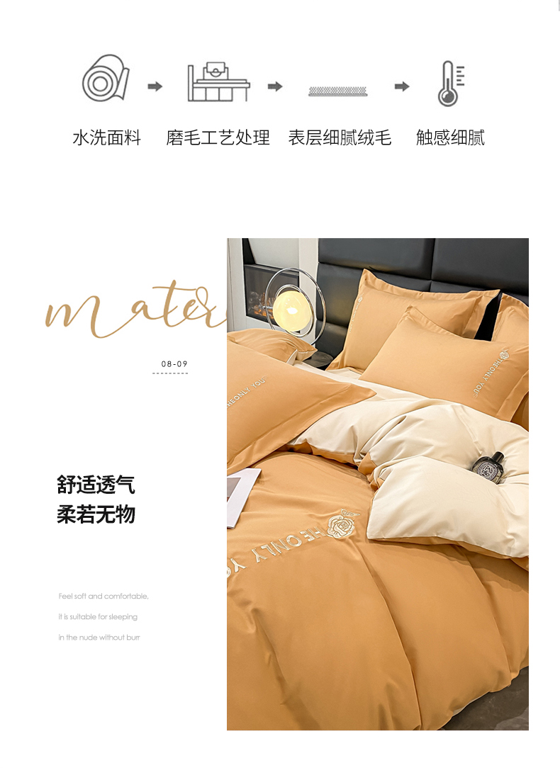 商品名称:N先生2024新款水洗磨毛四件套-露娜系列 橘