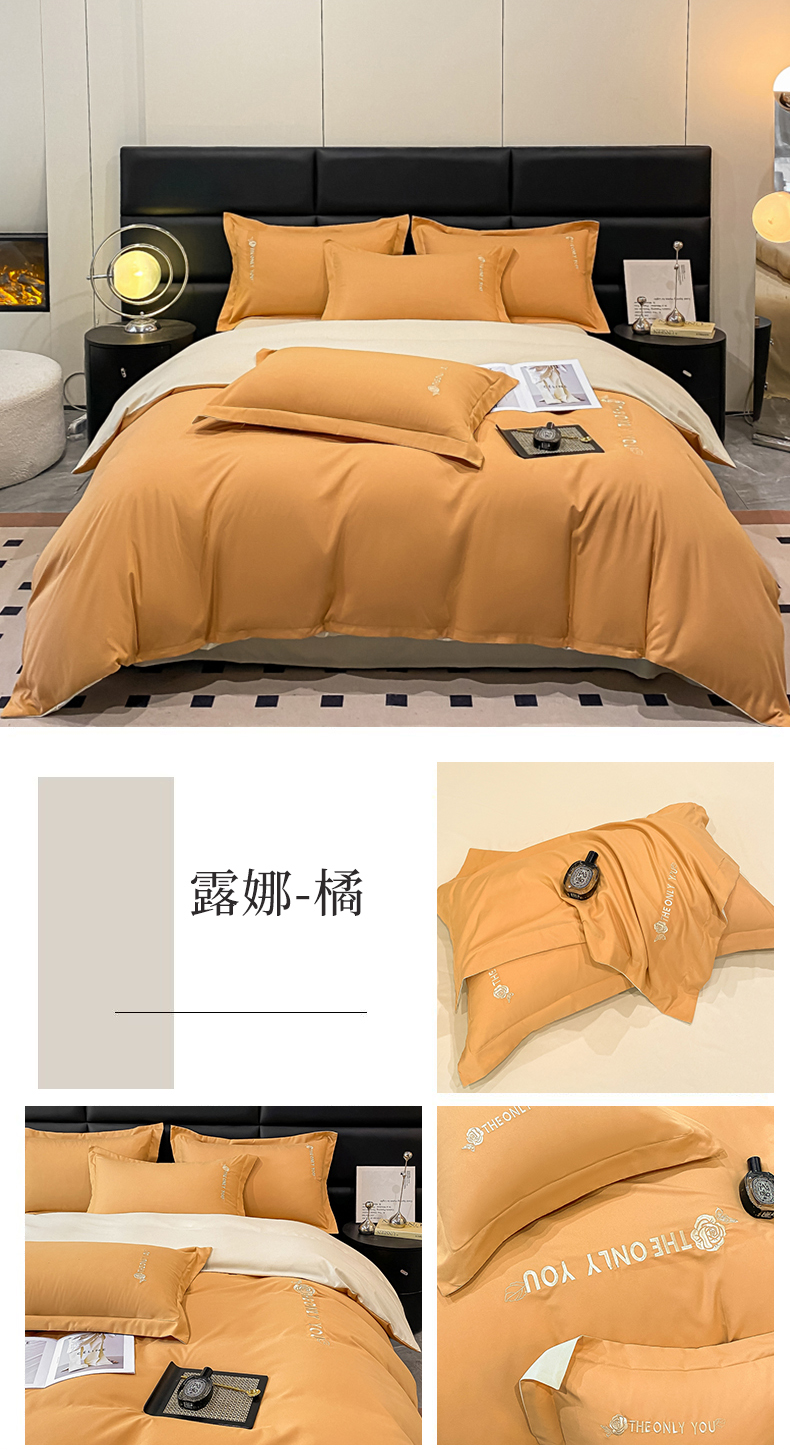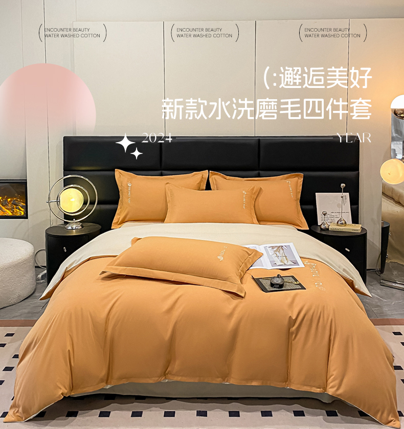 N先生2024新款水洗磨毛四件套-露娜系列 橘