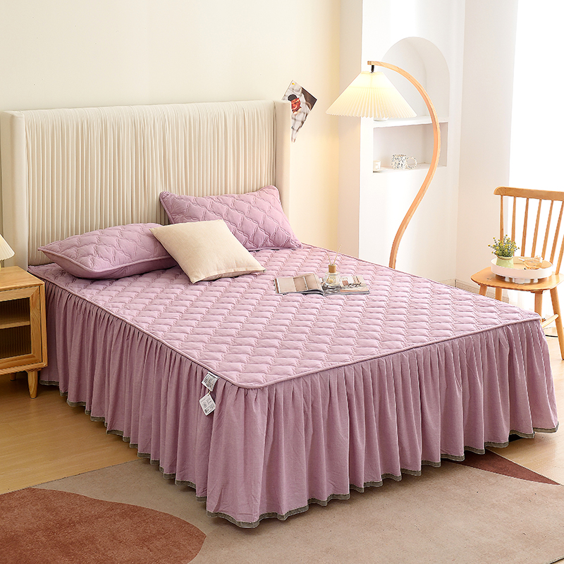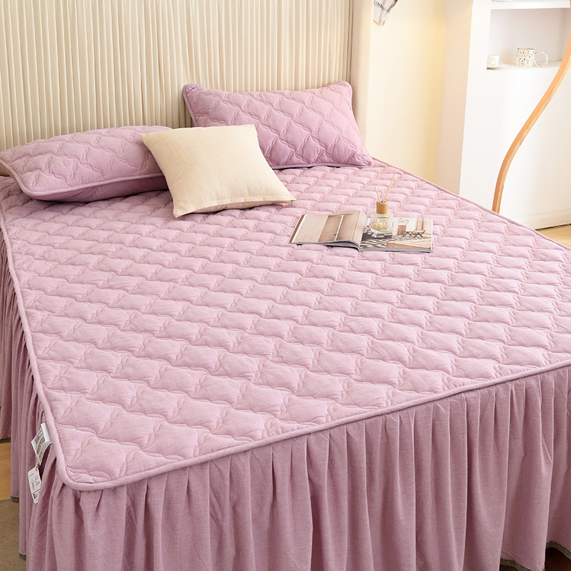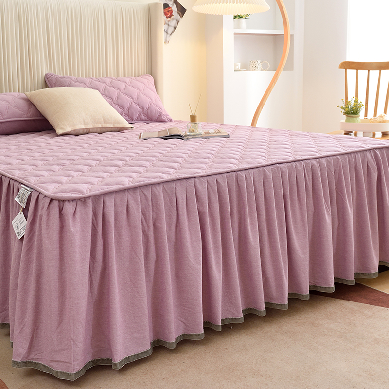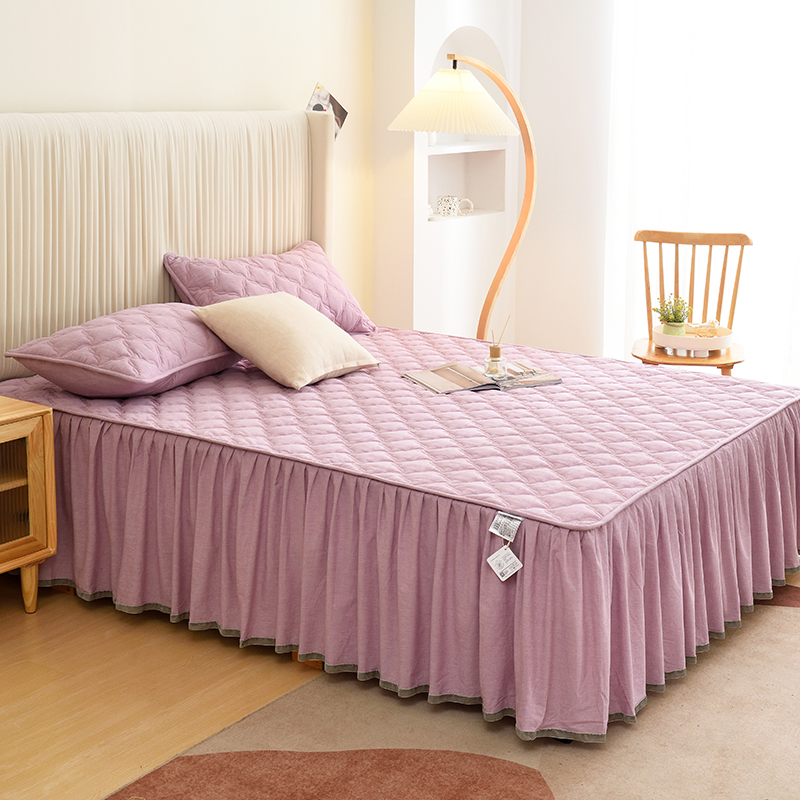 3C 2024新款风车抗菌水洗棉床裙 紫色
