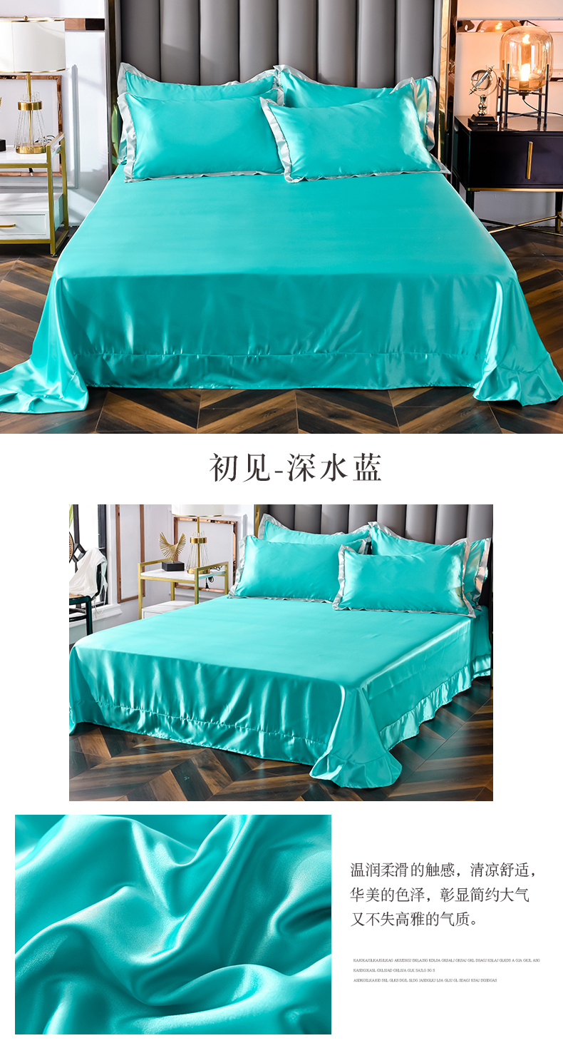 商品名称:经年 2025新款奢华真丝手感冰丝单品套件-初见系列 单床单 初见-深水蓝