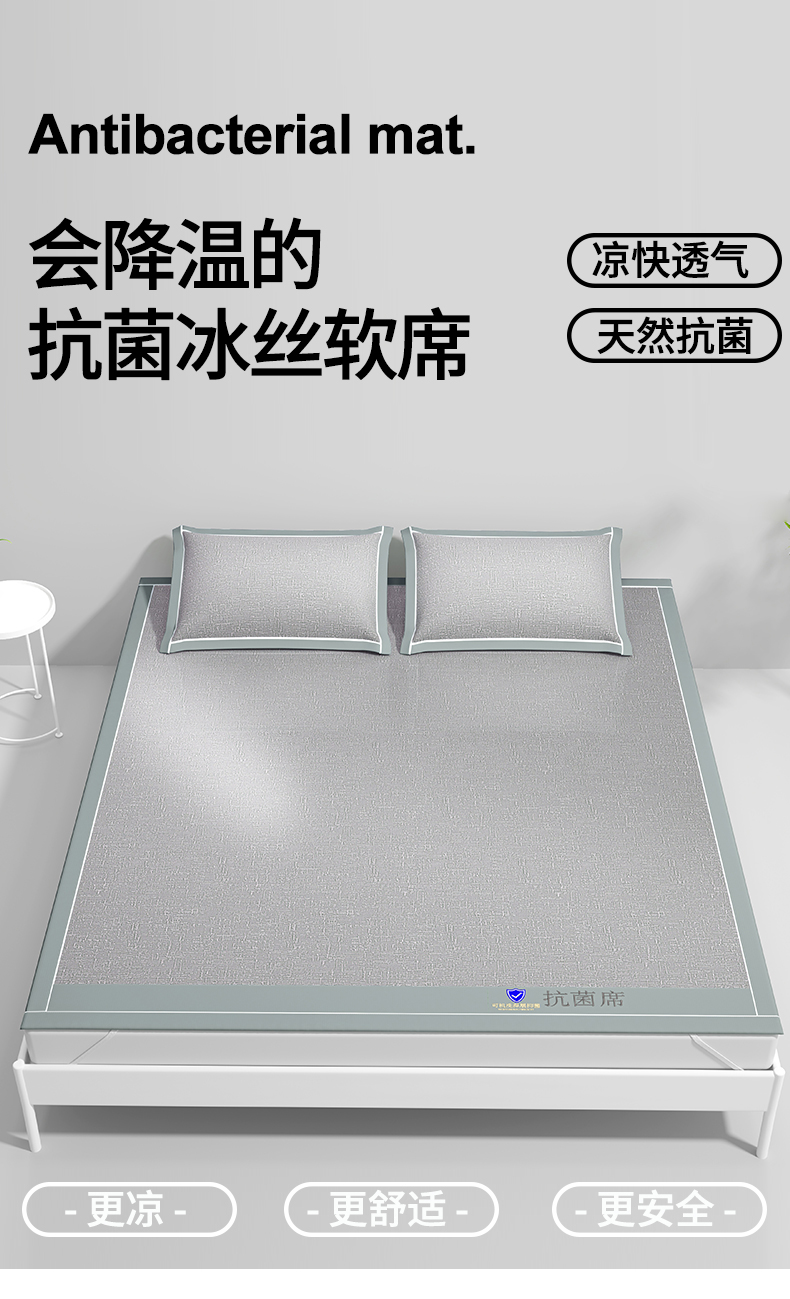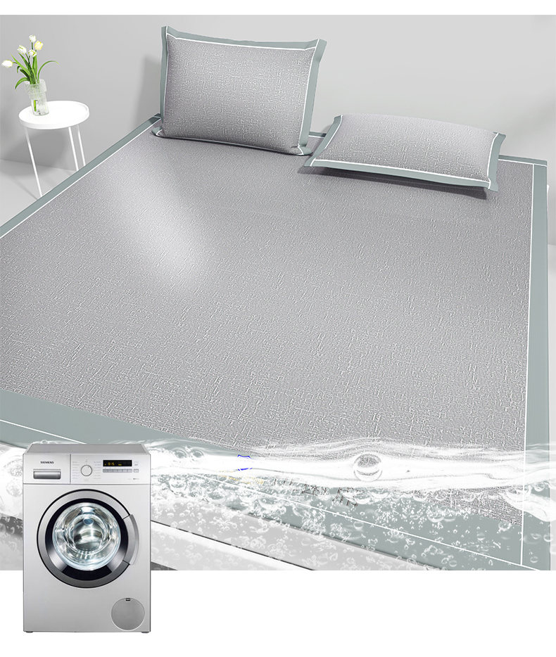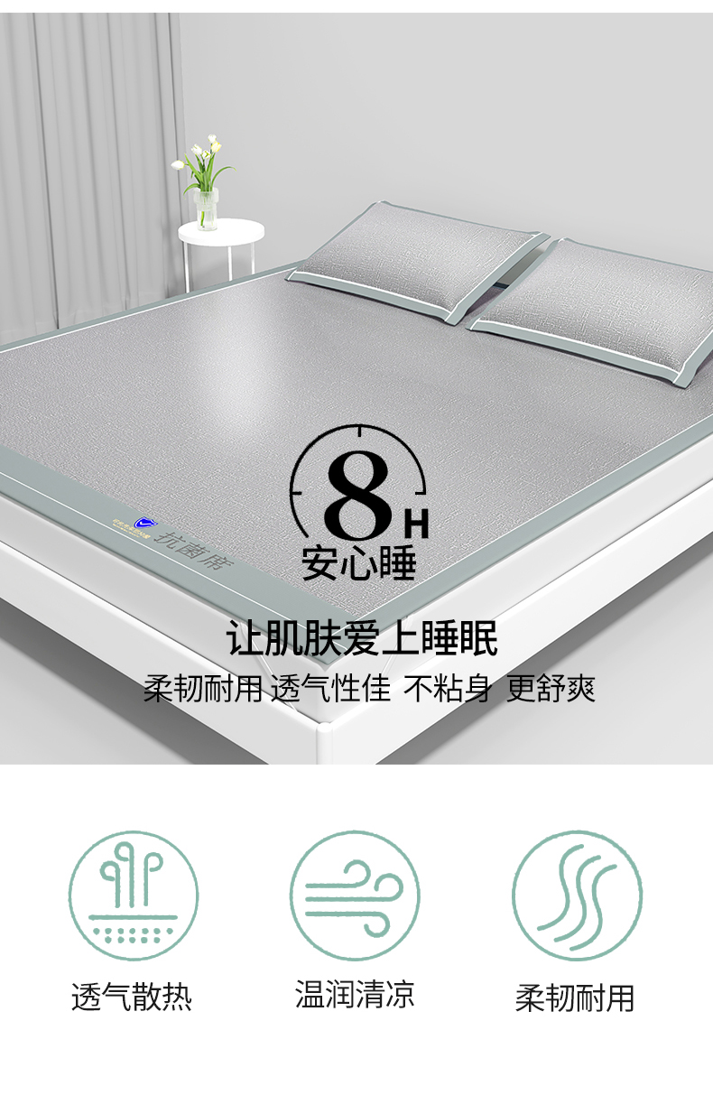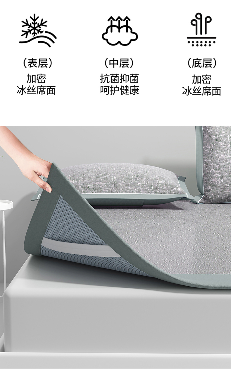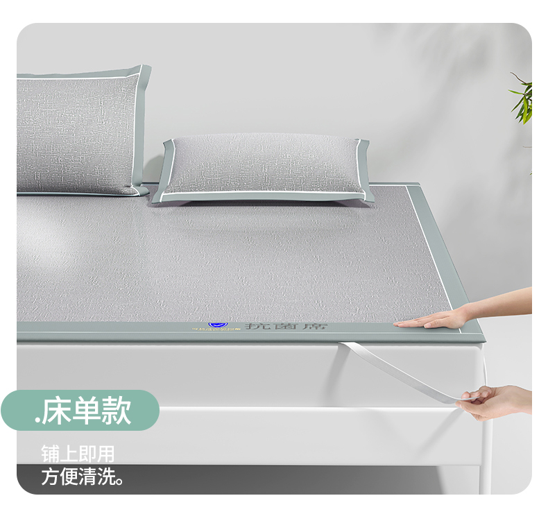 商品名称:席佬大 2025新款可机洗抗菌除螨冰藤席绑带款 床笠款 凉席 绅士灰(床席款)