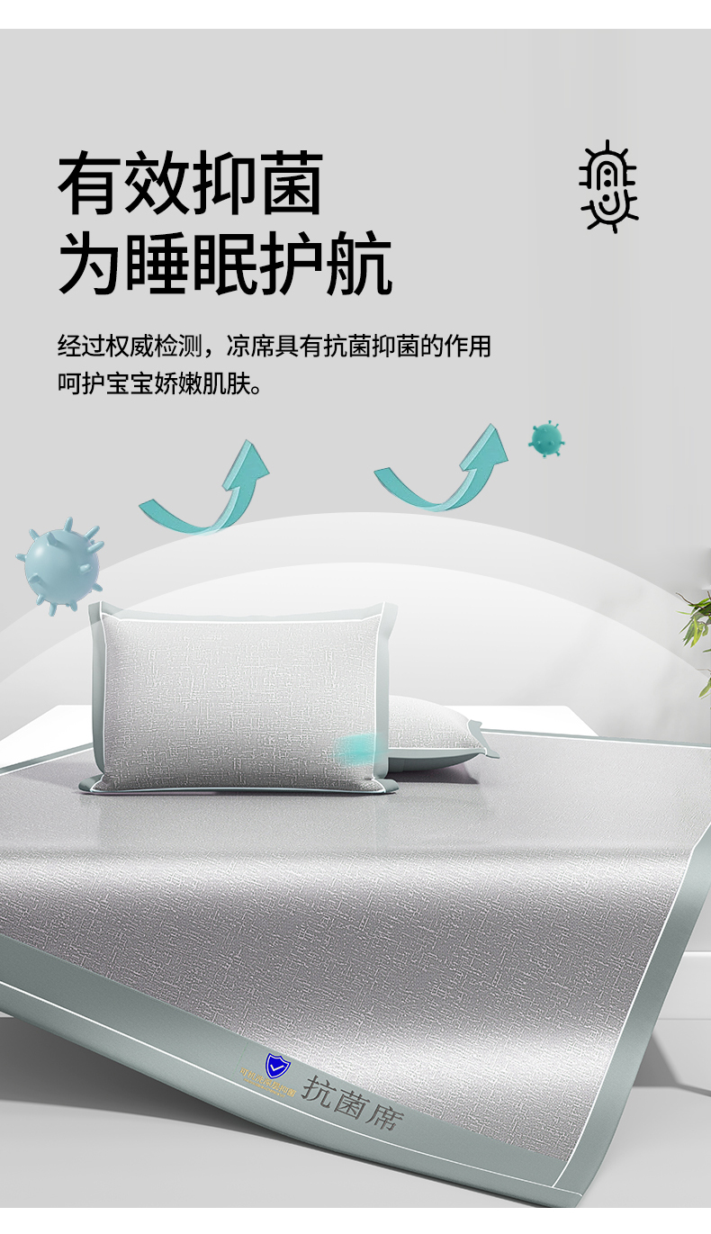 席佬大 2025新款可机洗抗菌除螨冰藤席绑带款 床笠款 凉席 绅士灰(床席款)