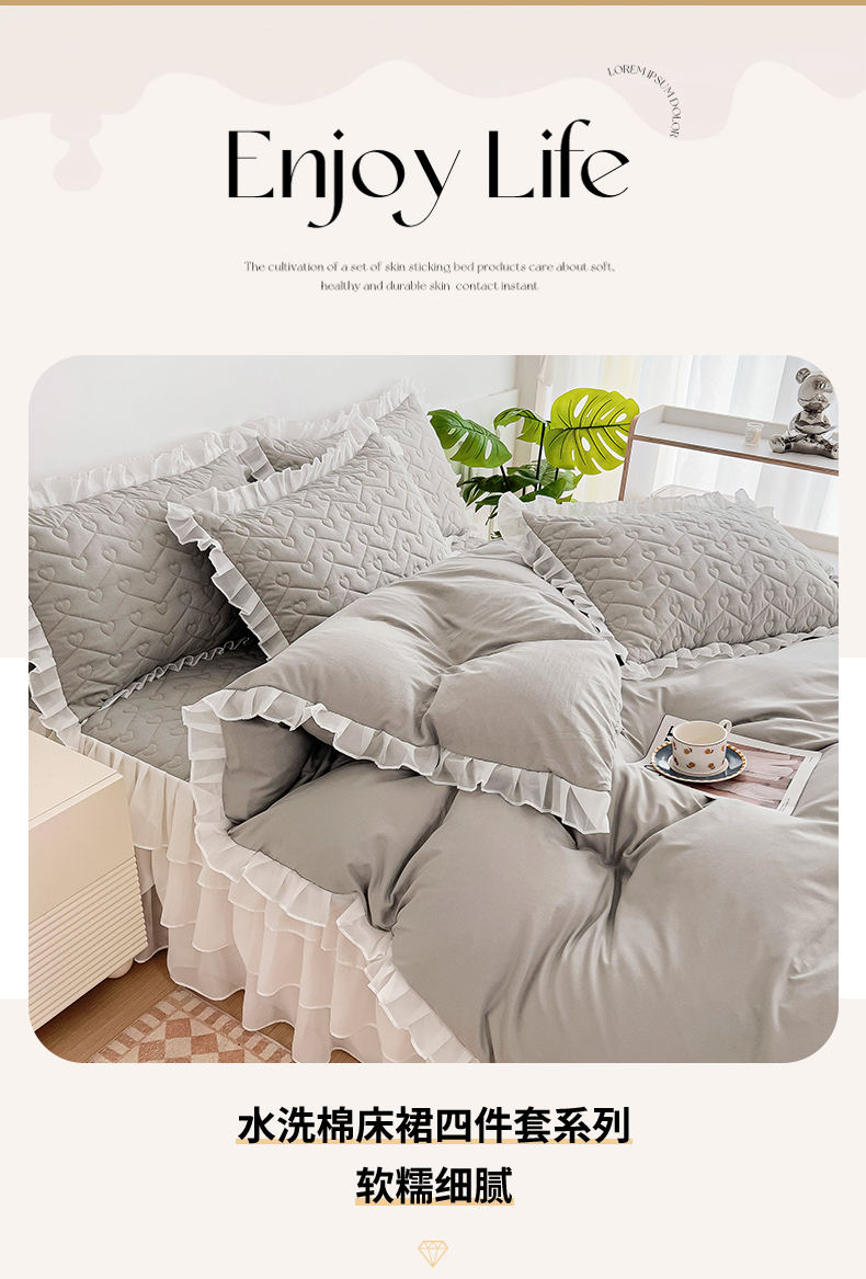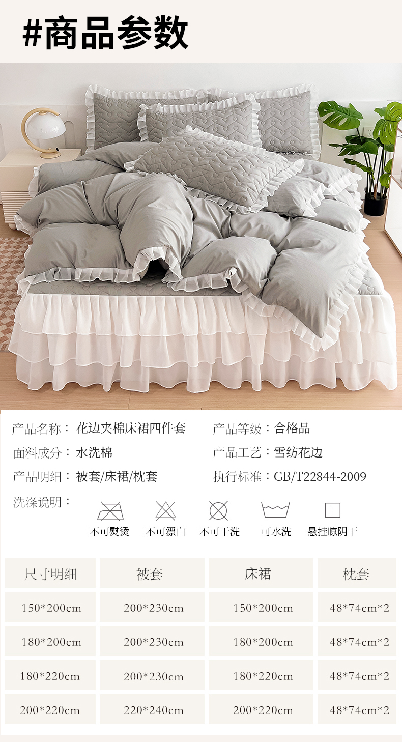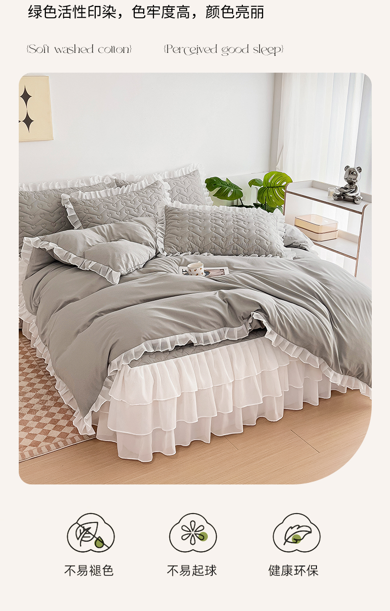 商品名称:屹成 2024新款水洗棉雪纺丽莎款床裙款四件套 银灰