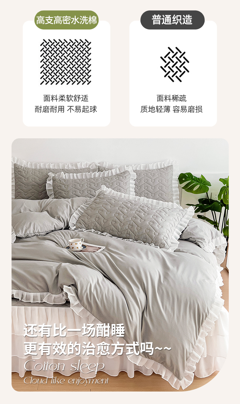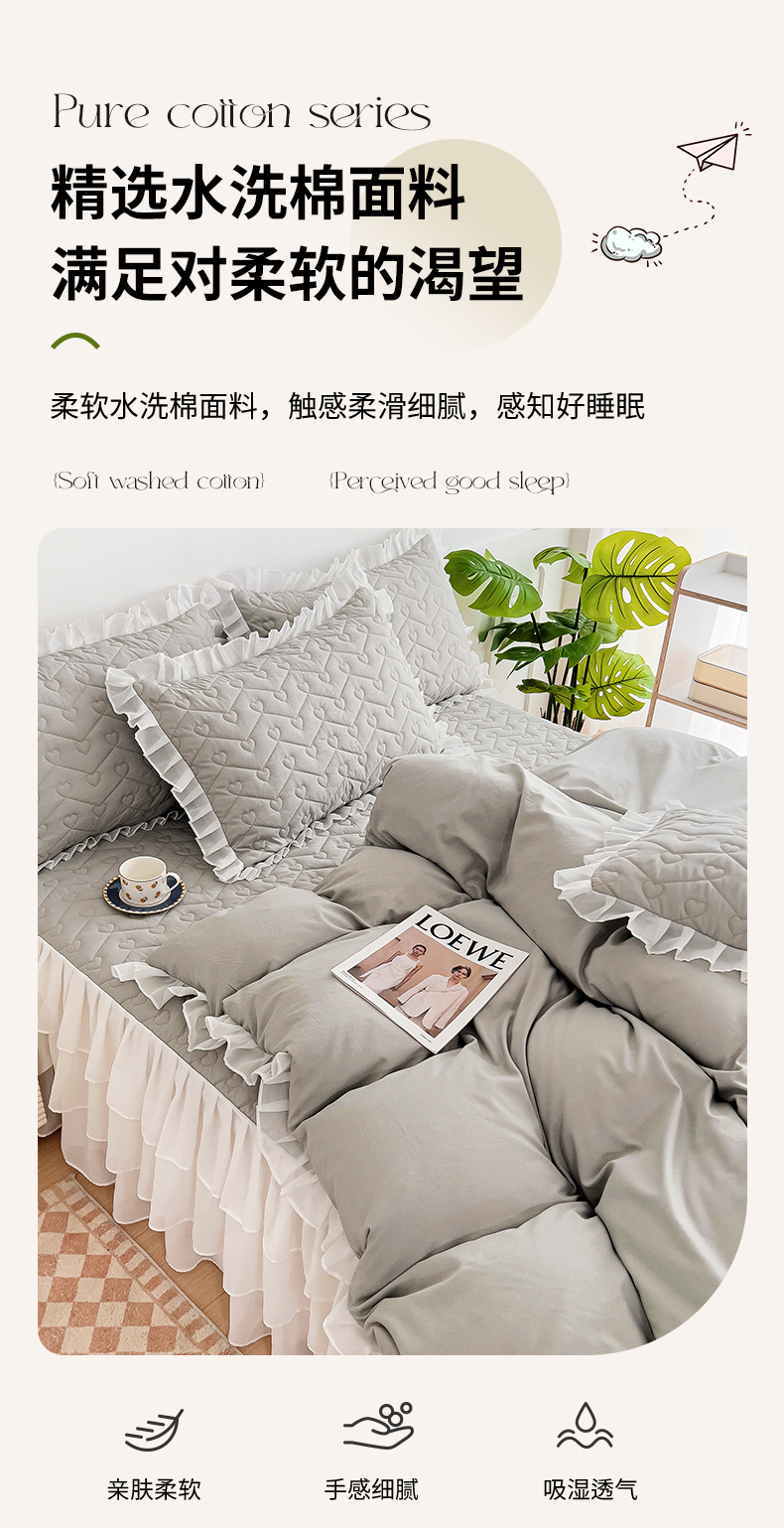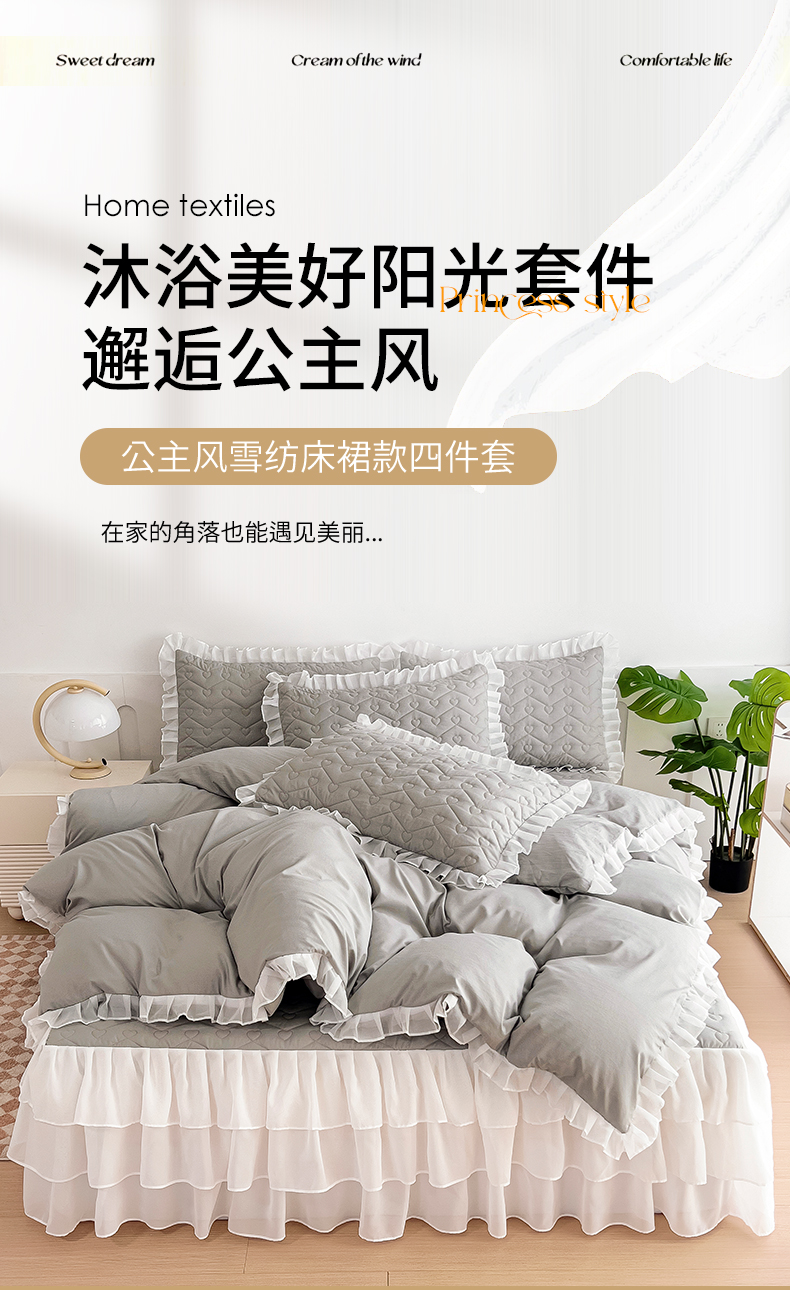 商品名称:屹成 2024新款水洗棉雪纺丽莎款床裙款四件套 银灰