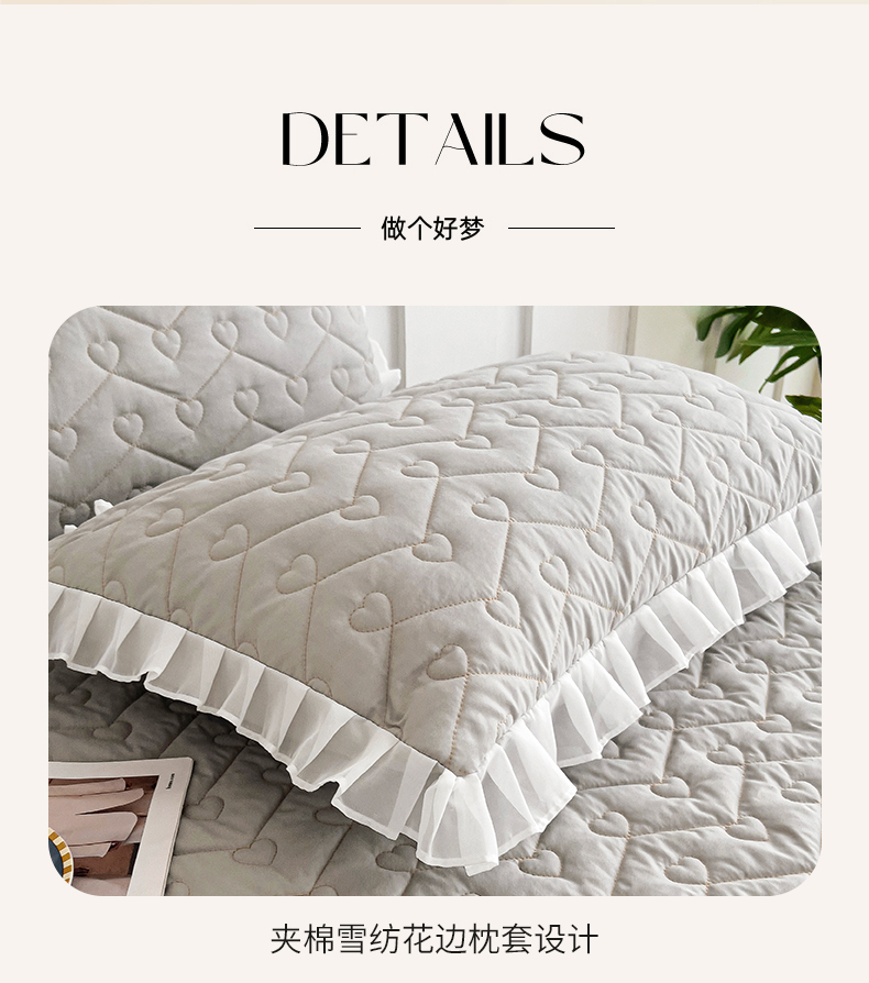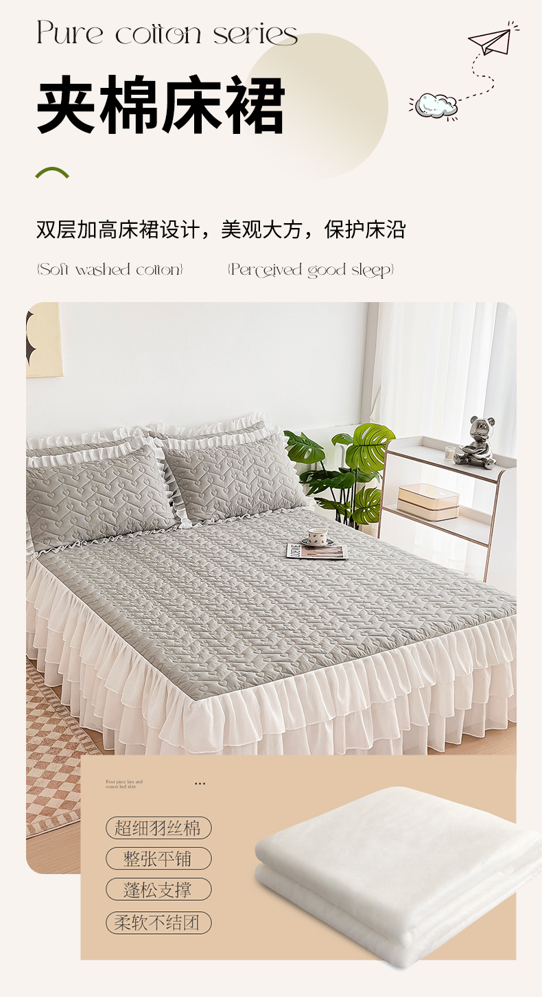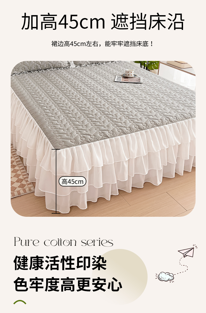 (总)屹成家纺2025新款水晶绒夹棉绗缝蕾丝床裙三件套(塞纳河畔)床裙单件起售价不低于105元,大红,豆沙,翡翠绿,粉玉,橄榄绿,蔚蓝,银灰