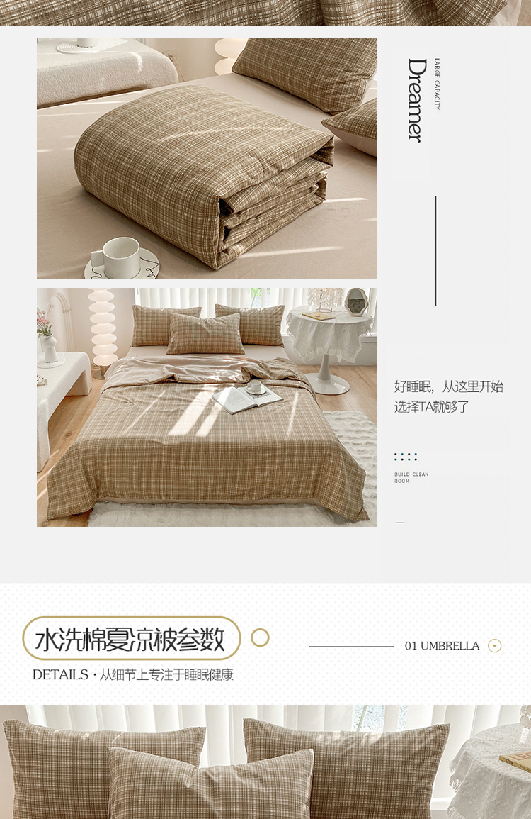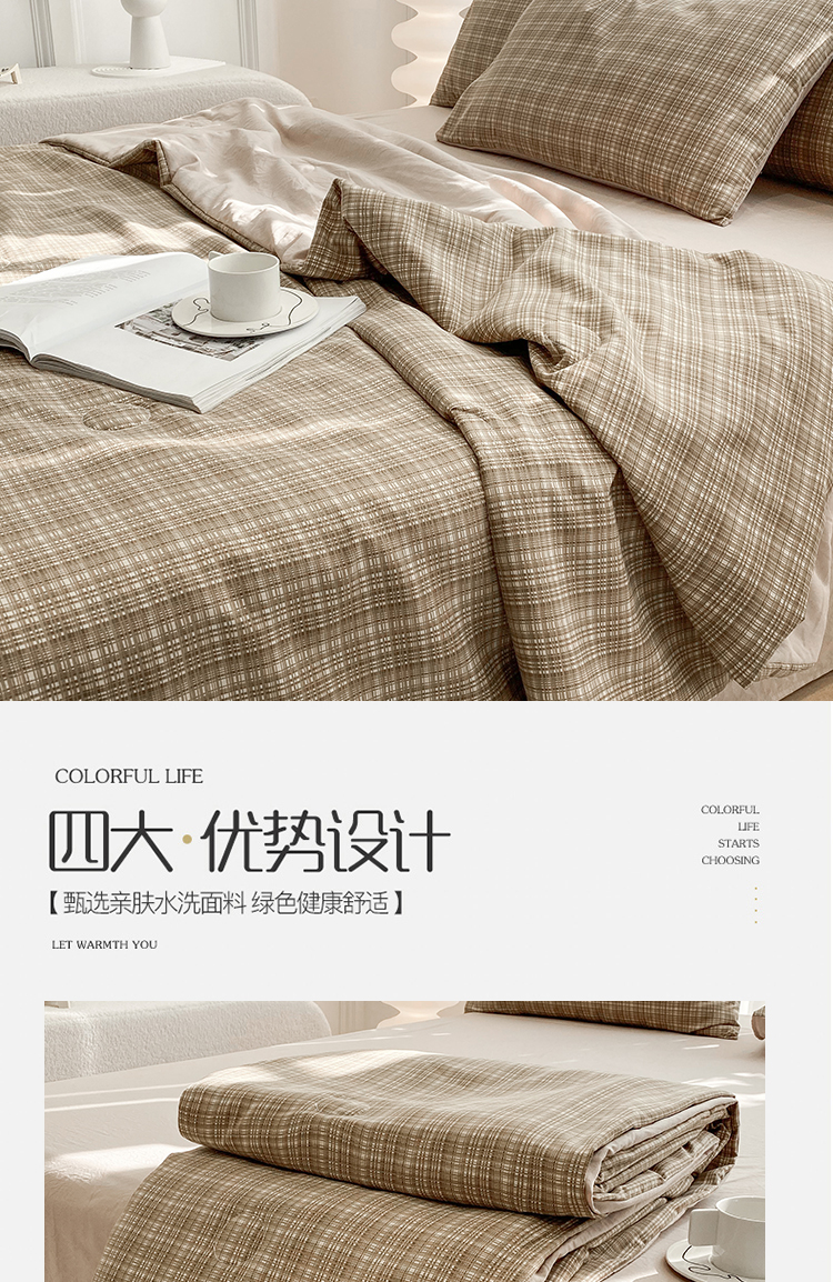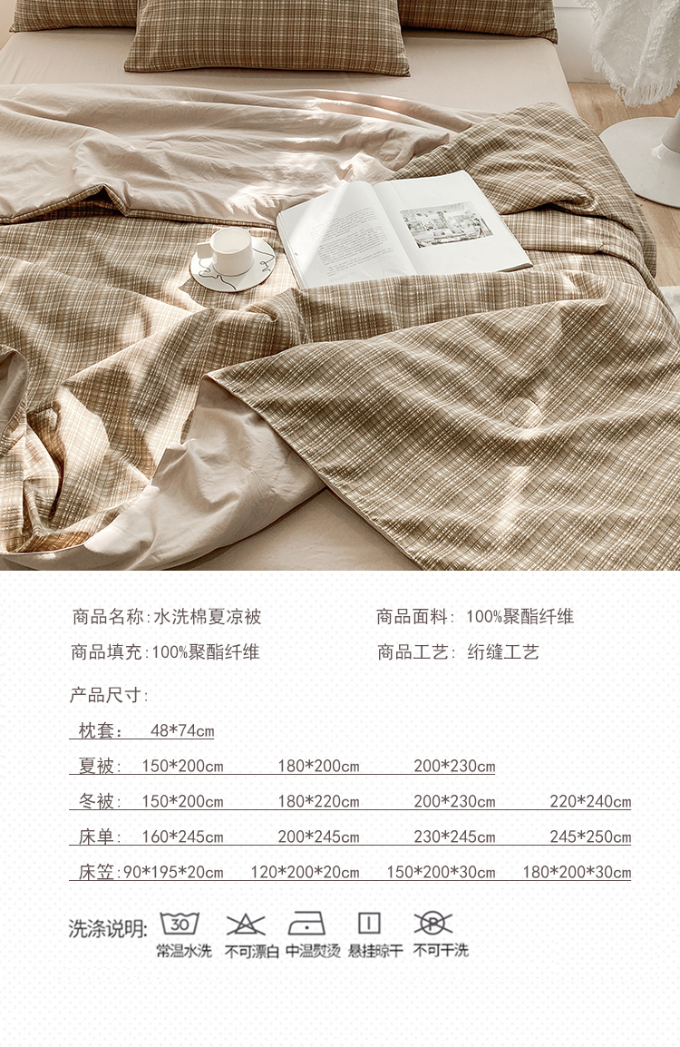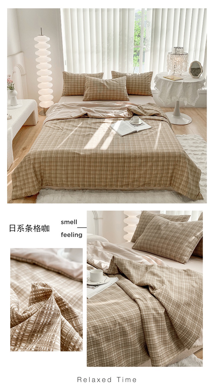 当前位置: 91家纺网 > 商品网购 > 床品套件 > 四件套 > 夏被四件套 > 啊雅家居2025新款水洗棉条纹印花夏被冬被四件套-床单款 夏被 日系条格咖