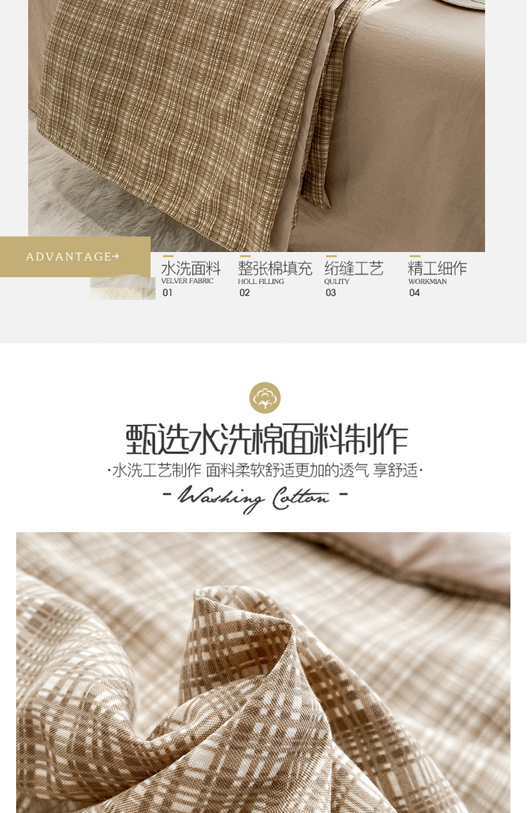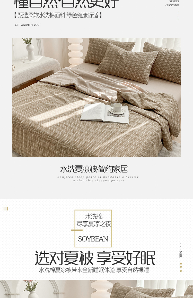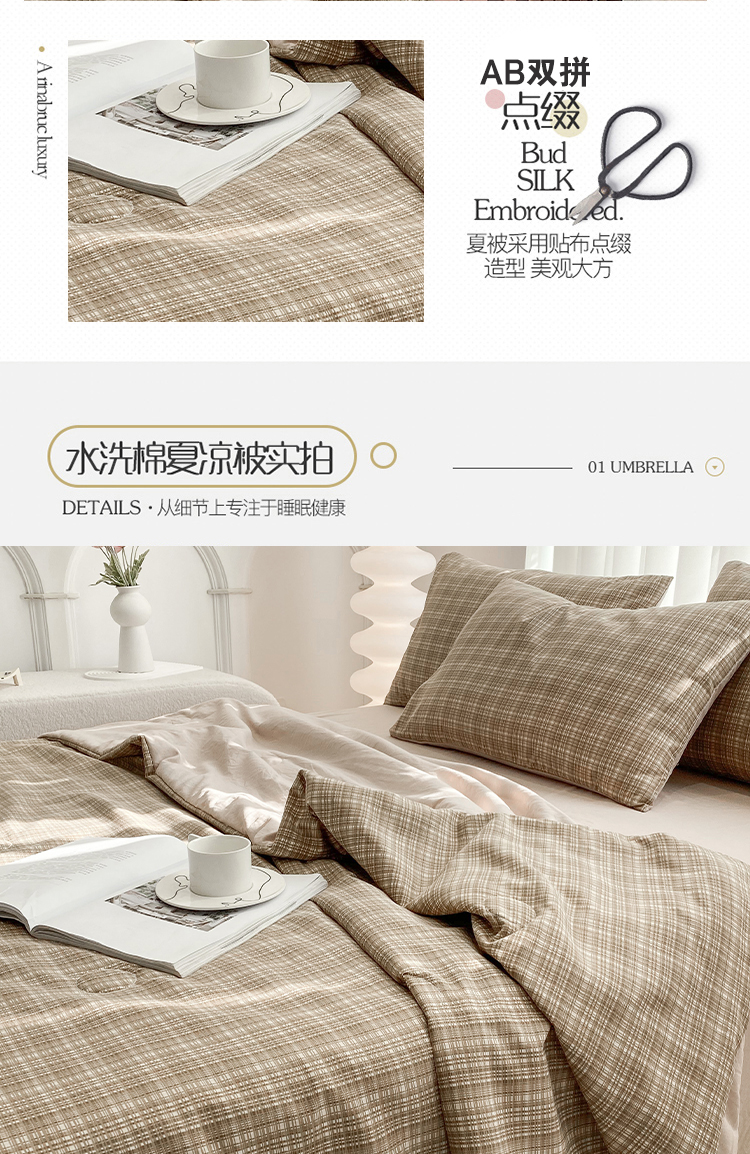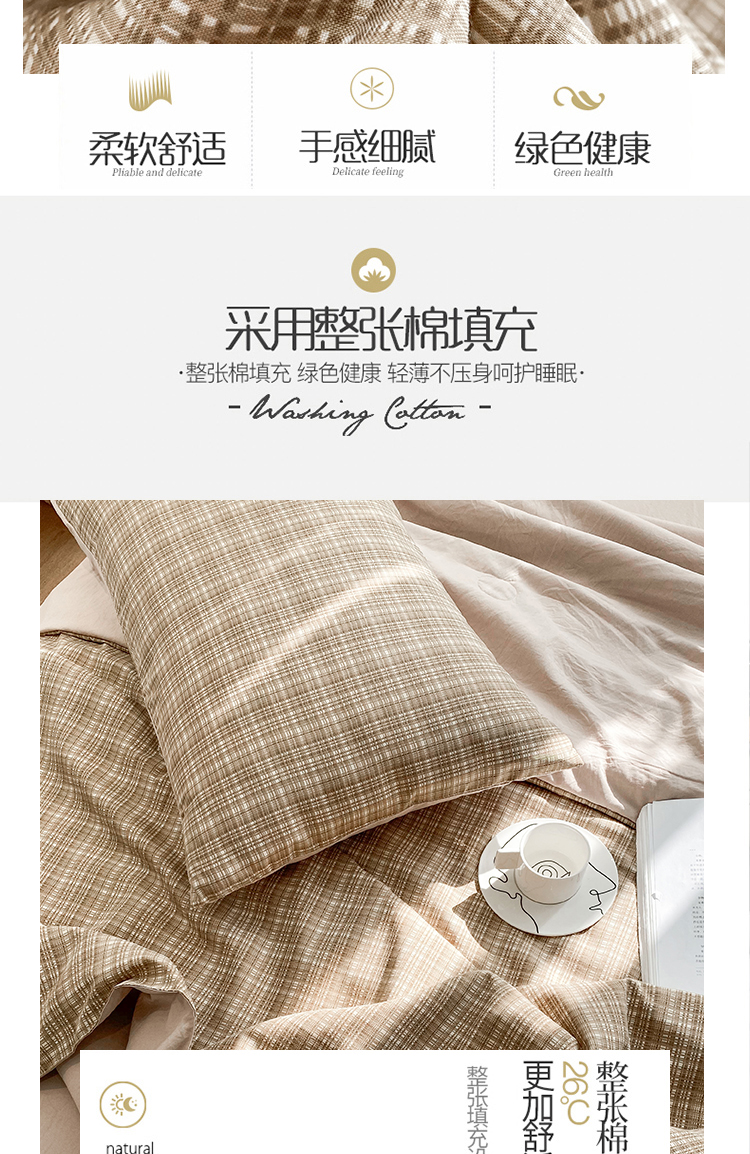 当前位置: 91家纺网 > 商品网购 > 床品套件 > 四件套 > 夏被四件套 > 啊雅家居2025新款水洗棉条纹印花夏被冬被四件套-床单款 夏被 日系条格咖