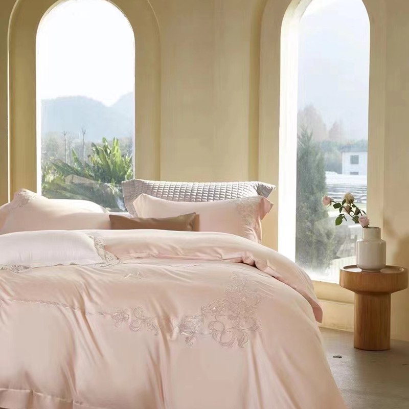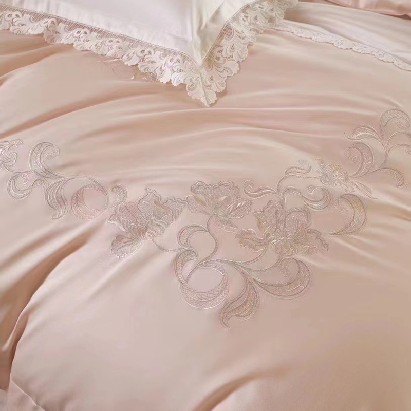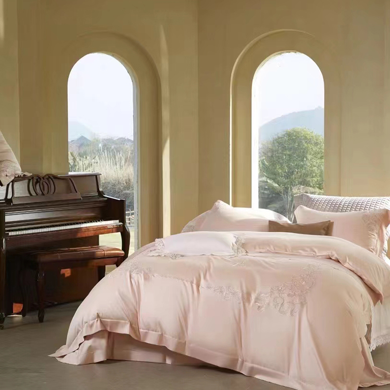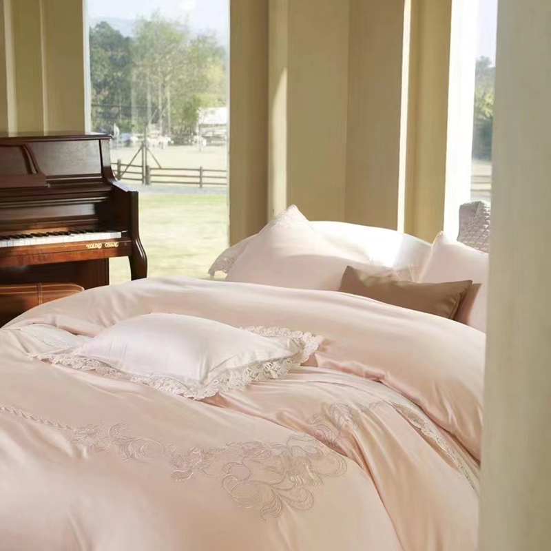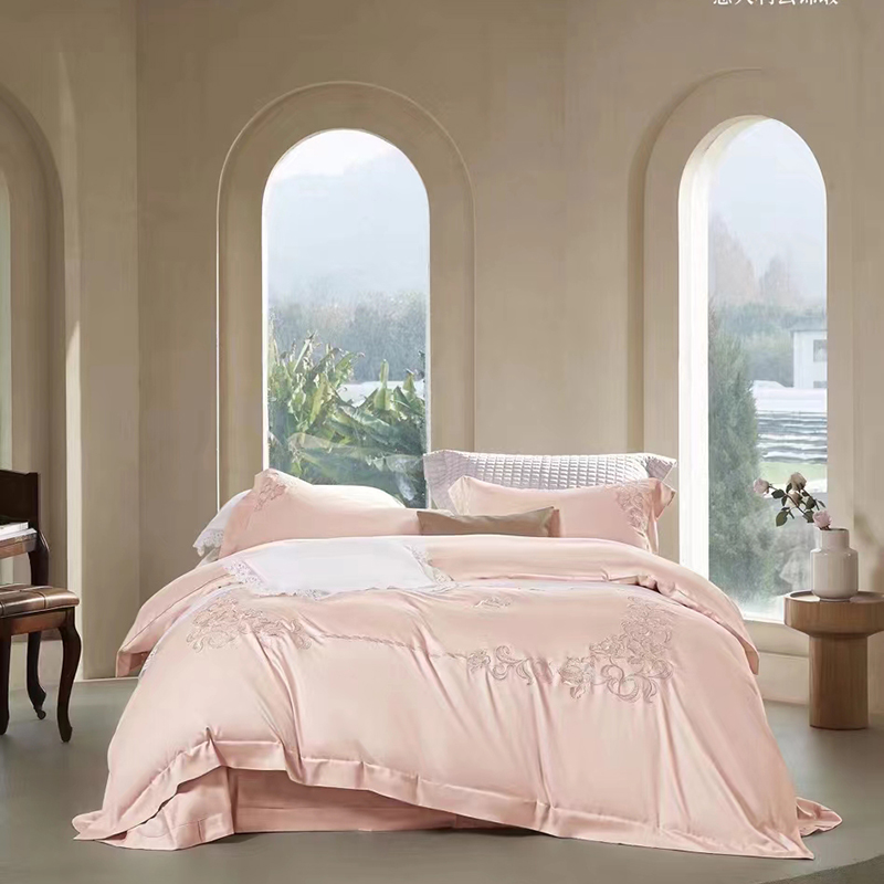 (总)玖玖爱家纺 2023新款120支贡缎长绒棉刺绣梦柔系列四件套,梦柔-香槟金,梦柔-香橙桔,梦柔-高级灰,梦柔-水蓝,梦柔-芙蓉玉