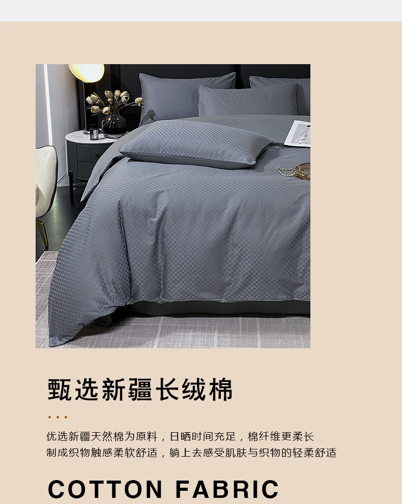 商品名称:金鑫汇 2024新款提花小方格全棉套件单品系列-单被套 深灰