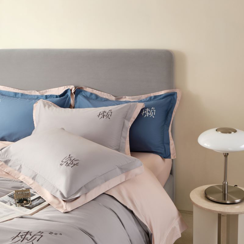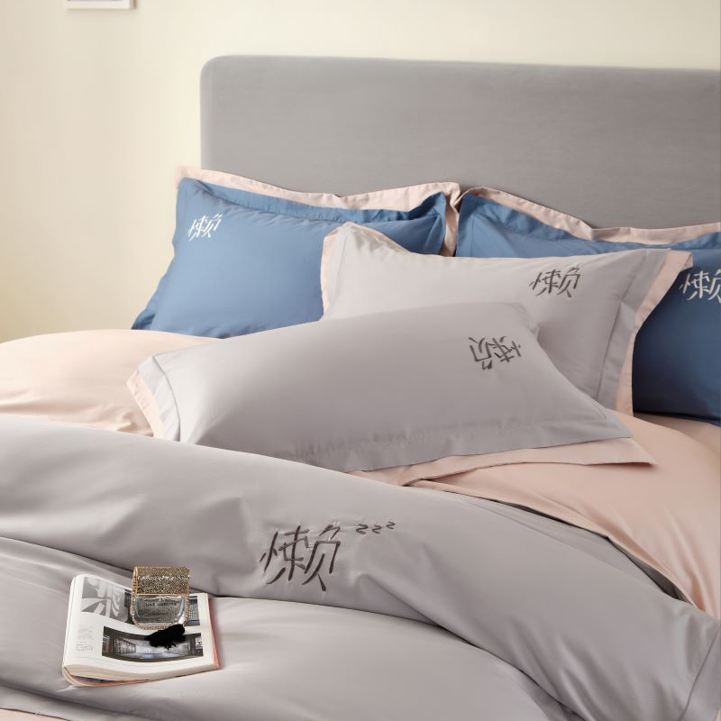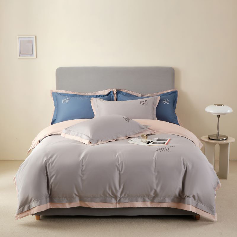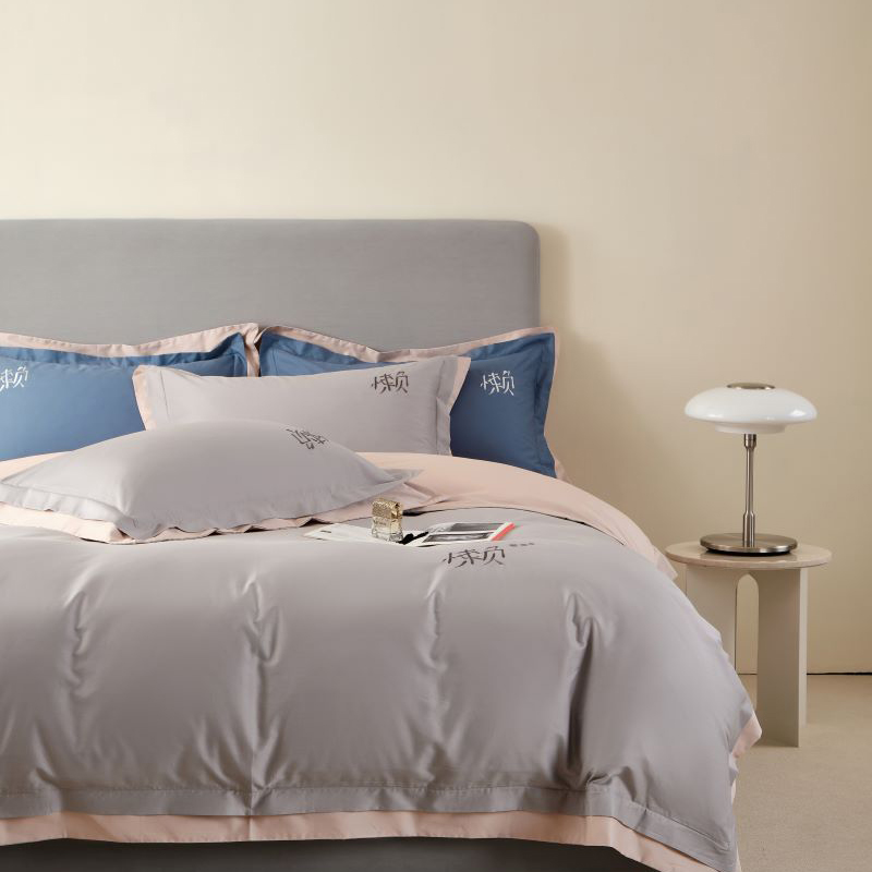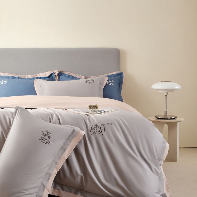 (总)LADYCOCO可可家居 2025新款三开口贡缎夹棉四件套 优易套/U易套 三开口被套,唯一专利发明单位,全球专利布局(控价不低于410元),浅粉+浅灰,浅紫+浅灰,浅灰+卡其