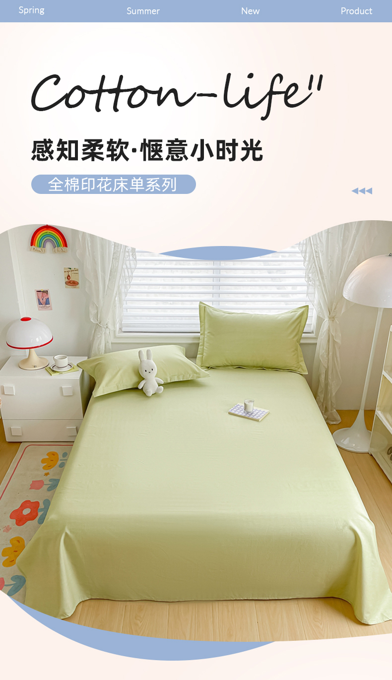 • 91家纺网 家纺一手货源 找家纺 金帛坊 2024新款全棉印花床单枕套三件套 春意