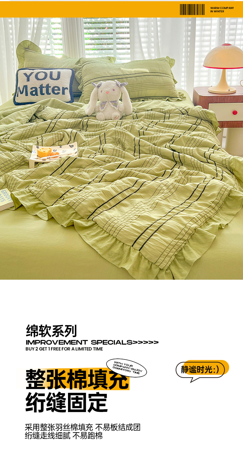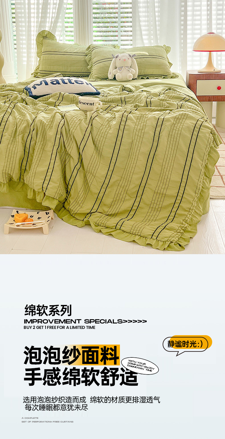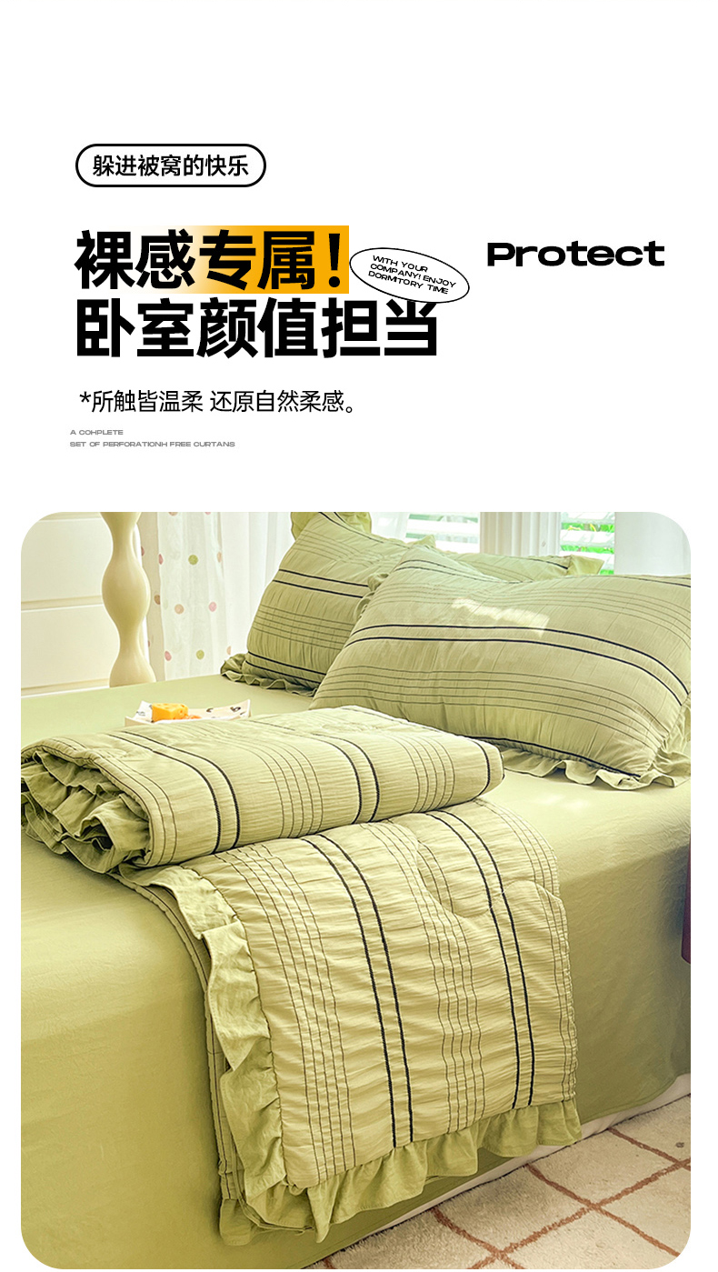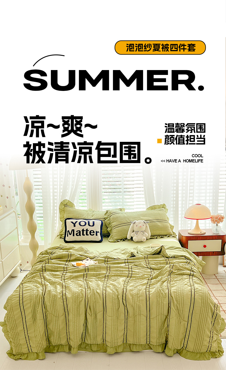 商品名称:满座家居 2025新款亲肤泡泡纱夏被四件套 果绿