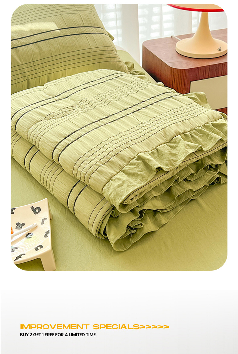 满座家居 2025新款亲肤泡泡纱夏被四件套 果绿