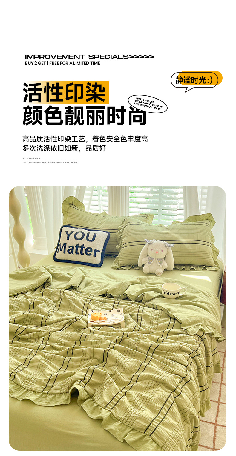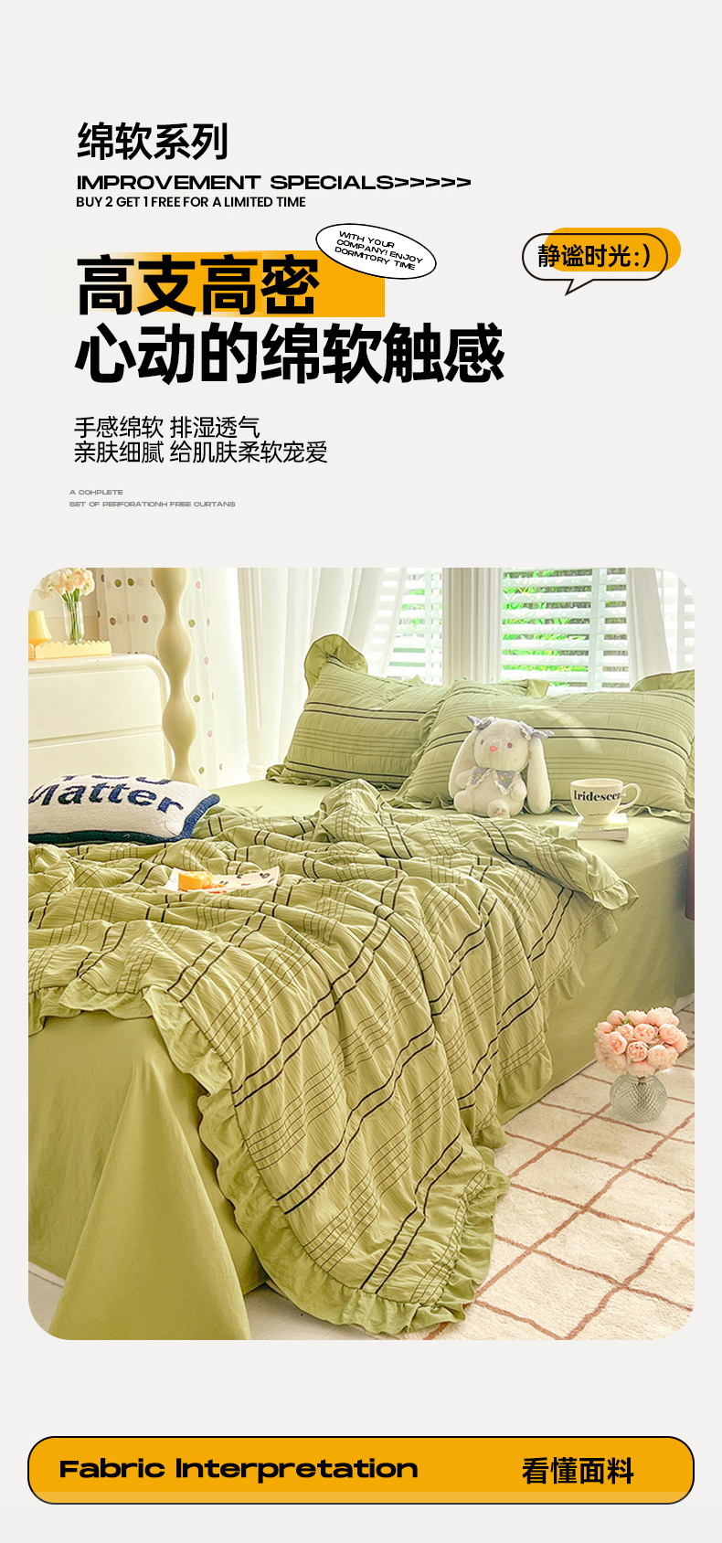 (总)满座家居 2025直播爆款 韩版复古提花公主格四件套 亲肤云朵棉水洗棉四件套,花漾-铂金灰,花漾-淡雅紫,花漾-奶昔黄,花漾-莫妮绿,花漾-月影蓝,花漾-知夏粉
