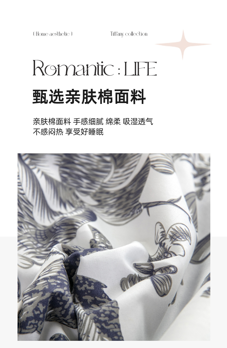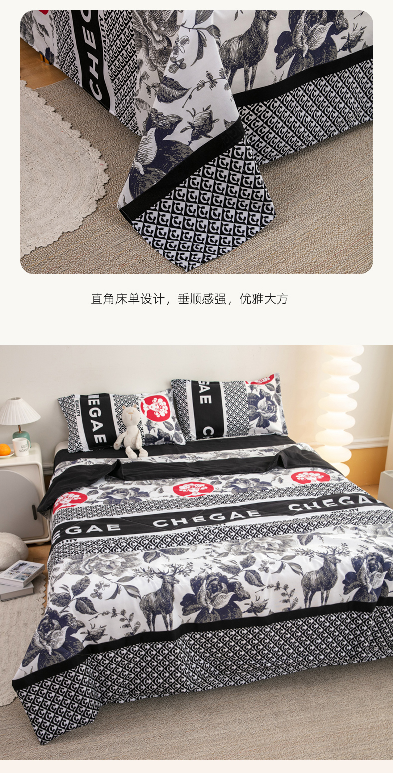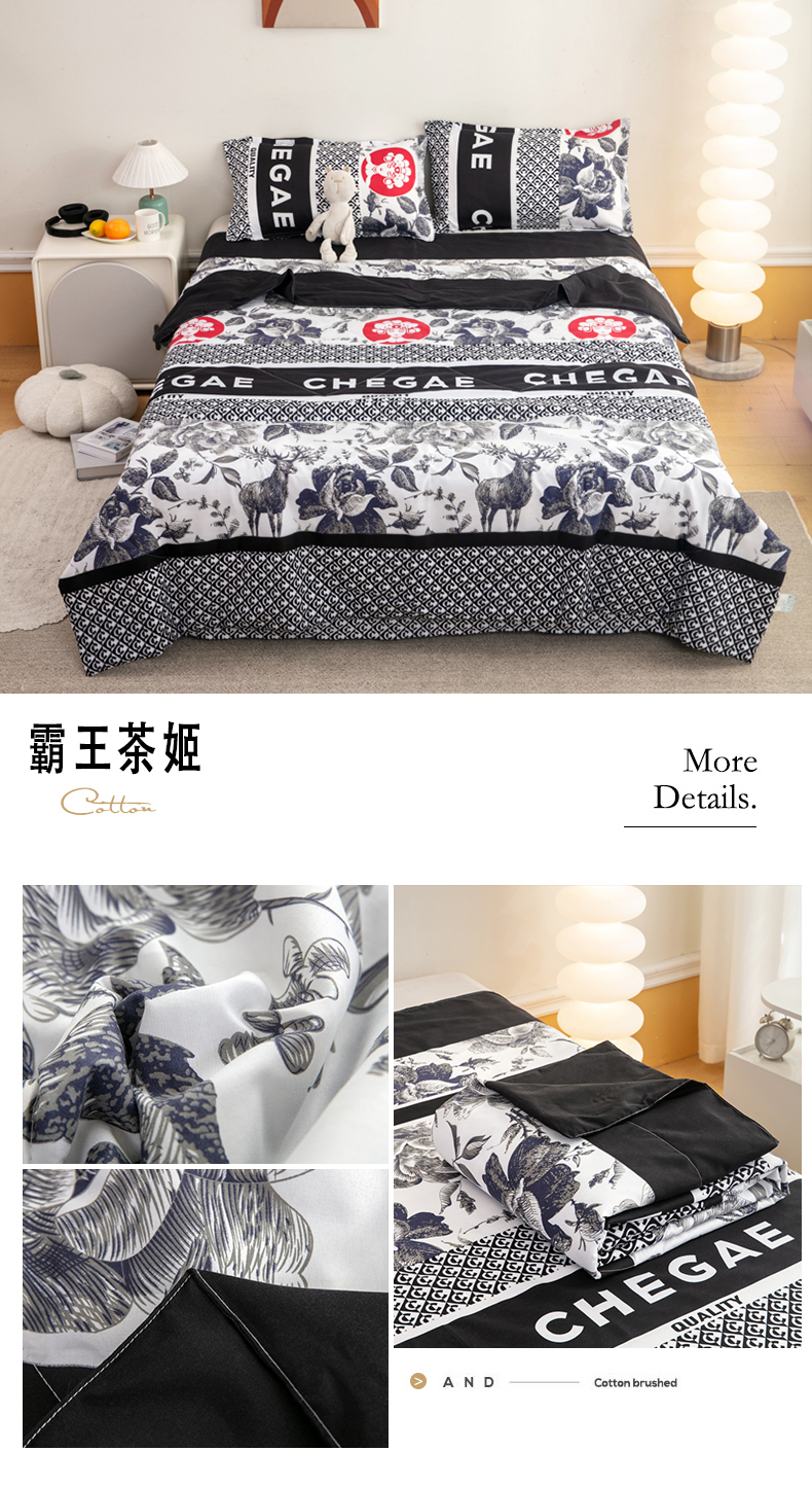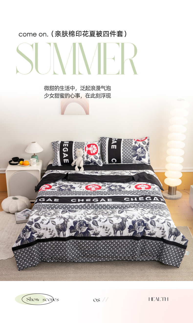 乐居坊 2024新款亲肤舒适印花芦荟棉夏凉被四件套 霸王茶姬