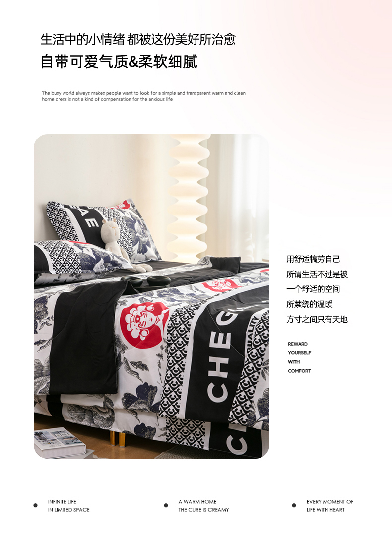 商品名称:乐居坊 2024新款亲肤舒适印花芦荟棉夏凉被四件套 霸王茶姬