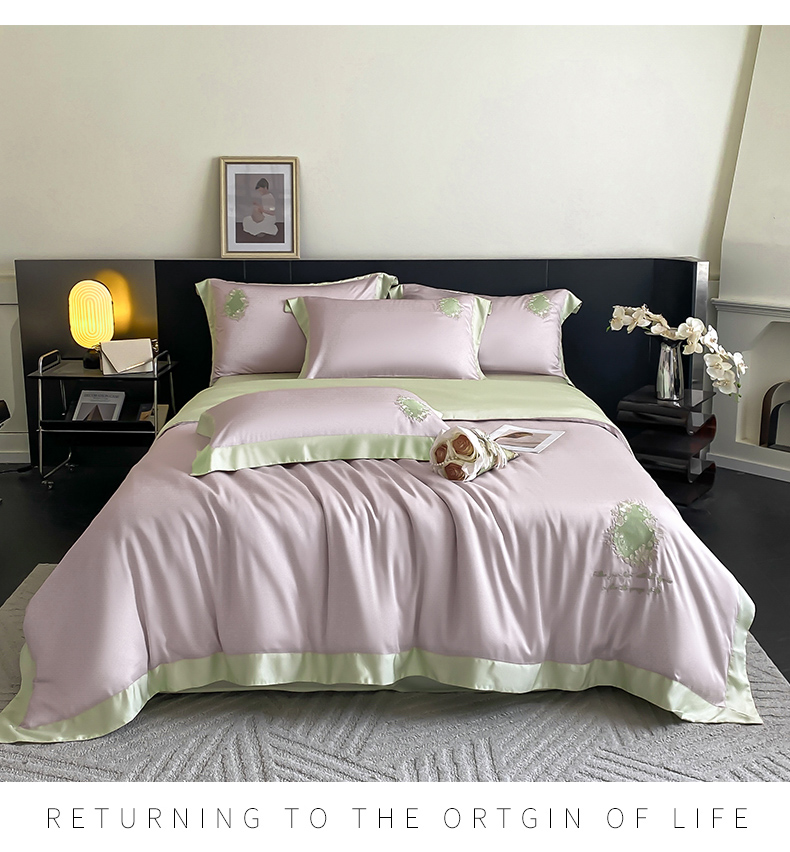 (总)爱缦 新款60支莱赛尔四件套-至真系列,蓝米驼,米白粉,浅紫,玉粉